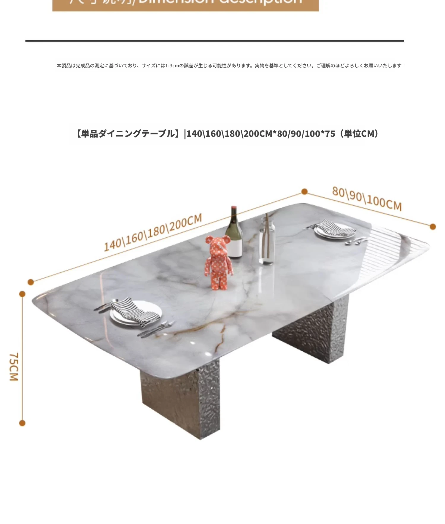 【天然彩晶石+ステンレス製脚】1.4*0.8メートルテーブル