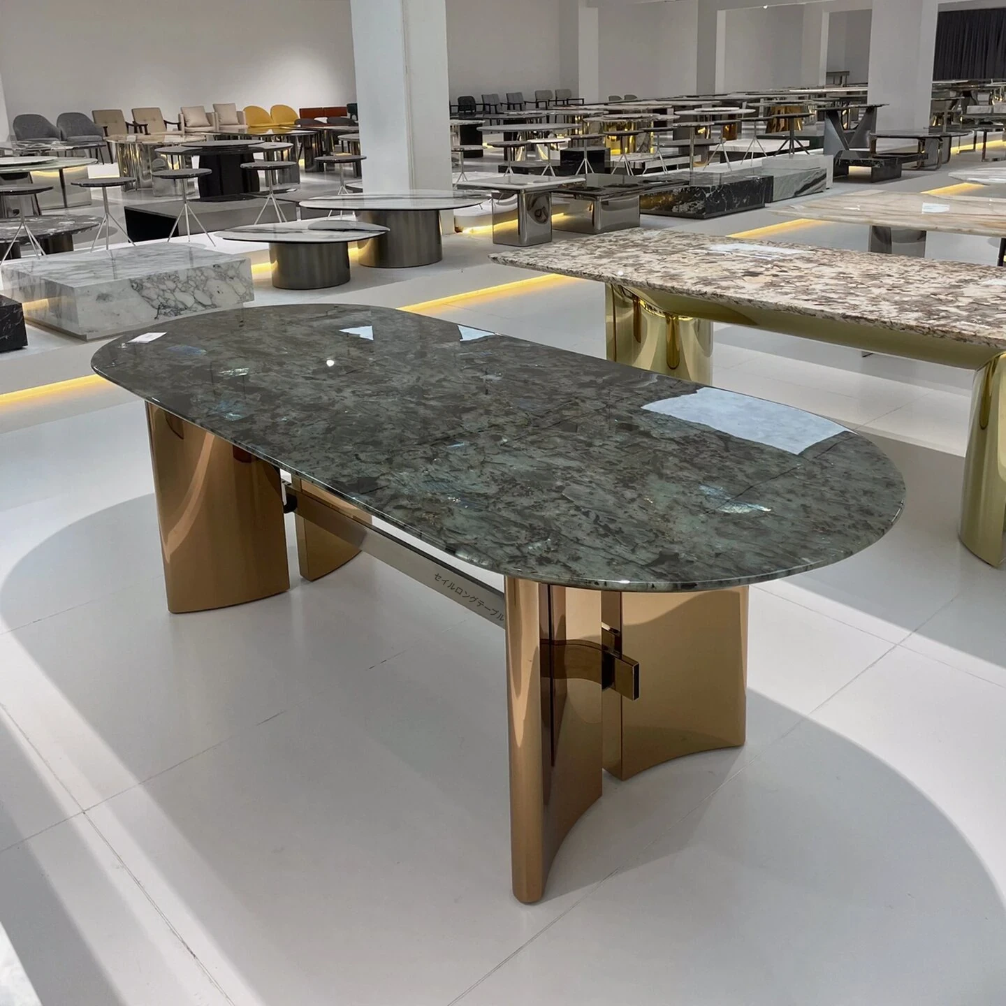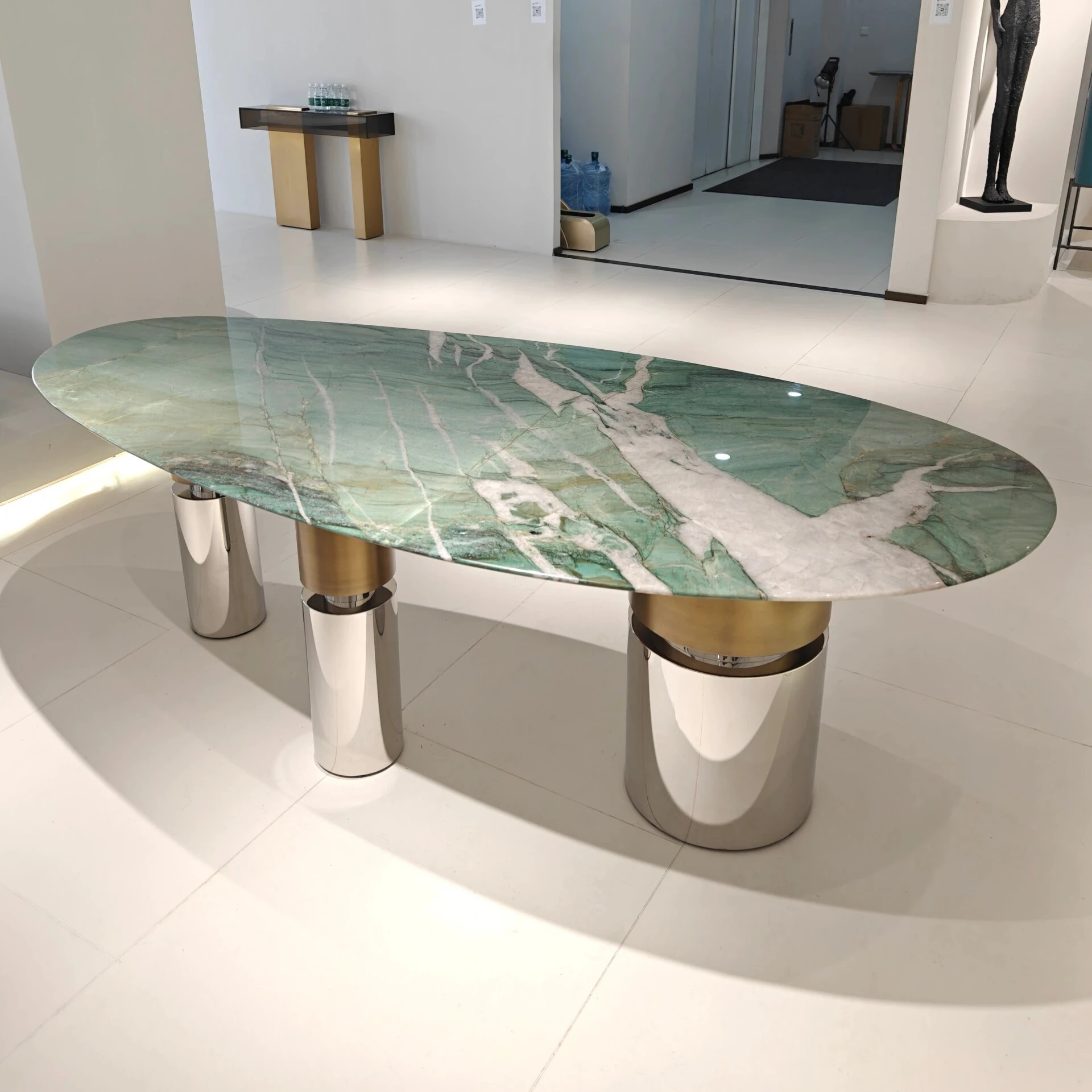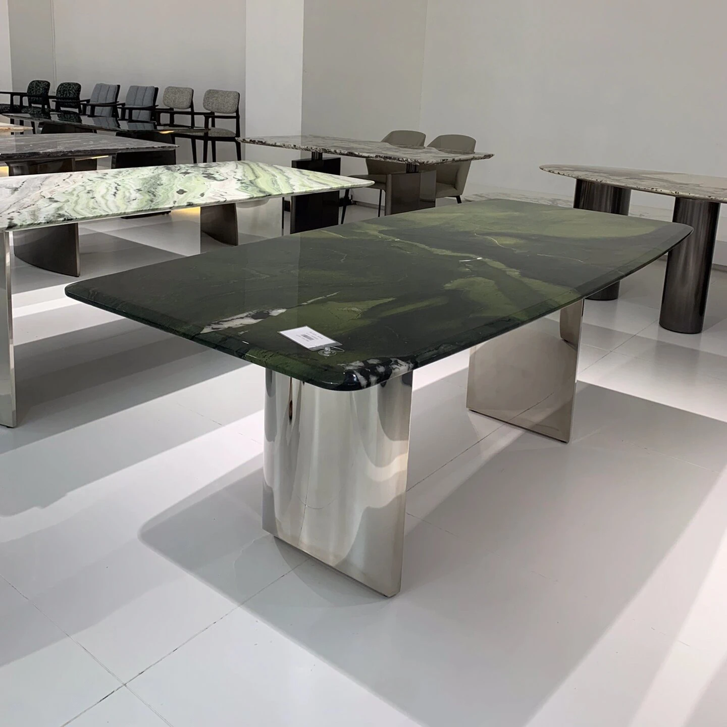 WARMカリーアイスジェード豪華石製ダイニングテーブル|輸入軽奢天然大理石使用|佛山製長方形高級食卓|洗練されたデザインで特別なひとときを演出!