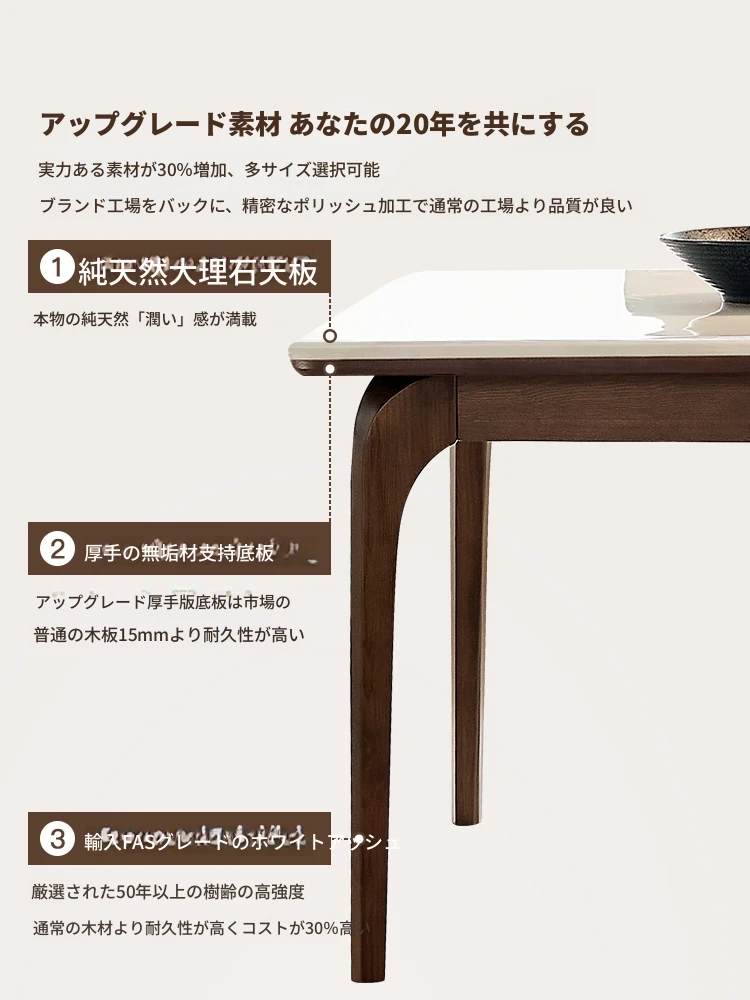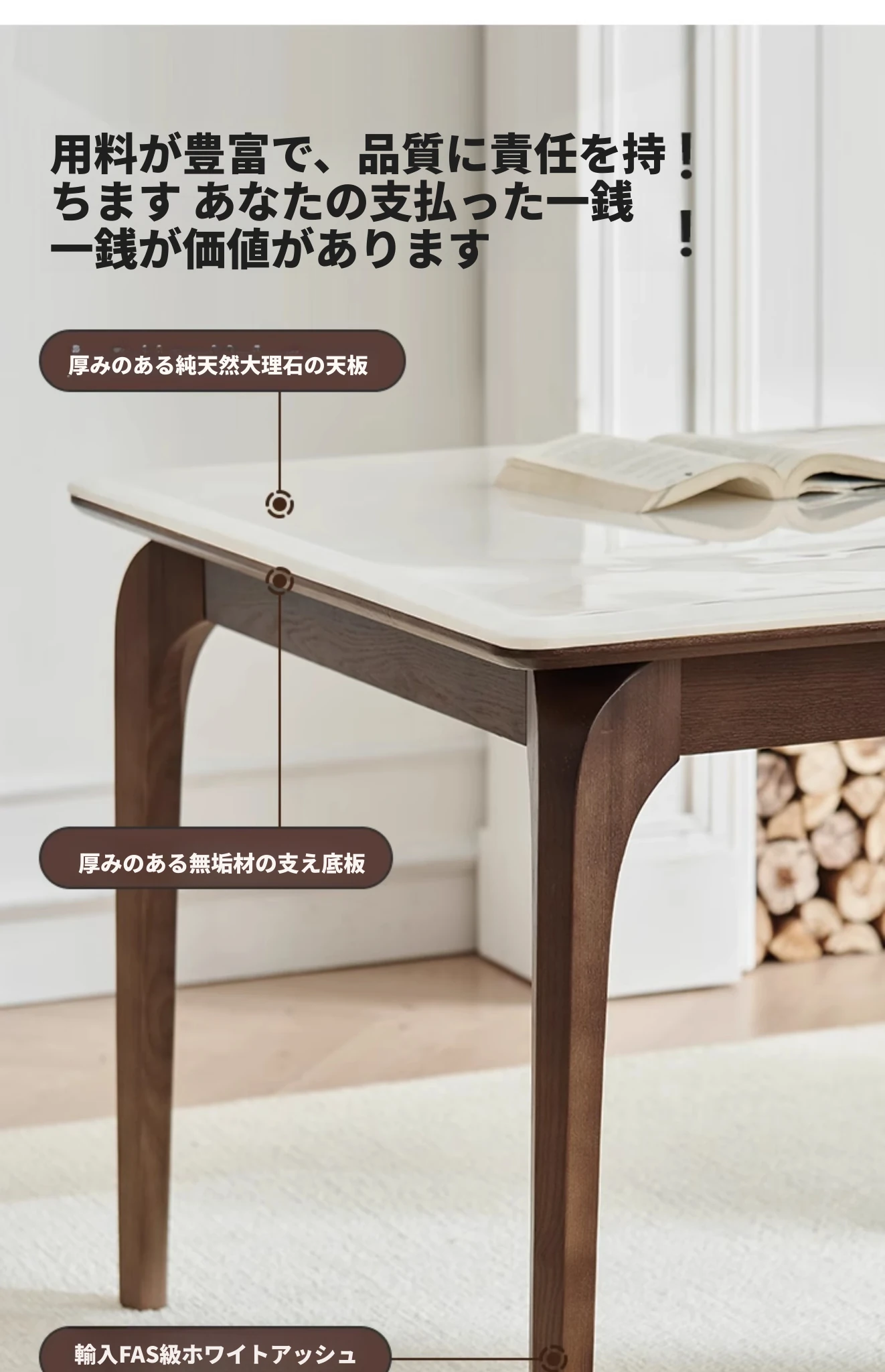 1.8メートル【本物のラグジュアリーストーン純天然大理石ダイニングテーブル】