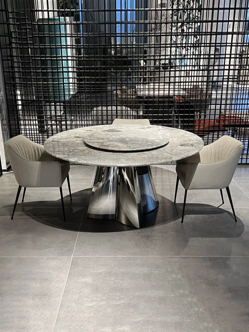 1.5+0.9メートル+10椅子オレオグレー高級石製ダイニングテーブル(偽物は10倍の罰)