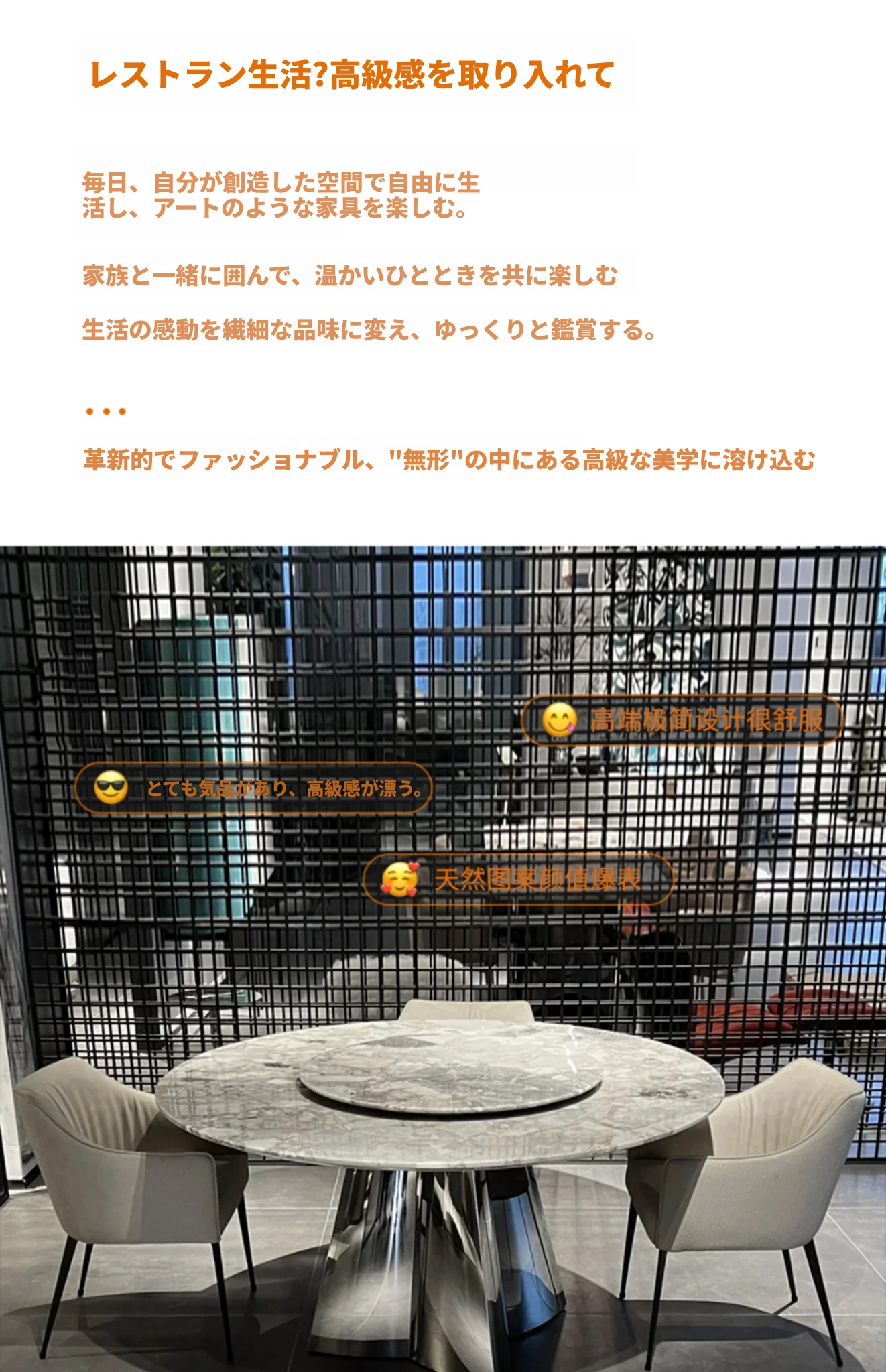 1.35+0.75メートル+6椅子オレオグレー高級石製ダイニングテーブル(偽物は10倍の罰)