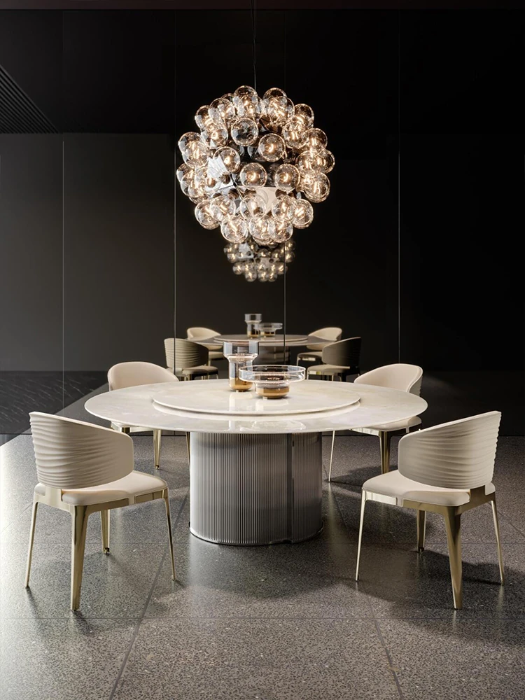 1.5メートル+80回転+10脚ロイヤルアイスストーン豪華ダイニングテーブル(偽物は10倍の罰)
