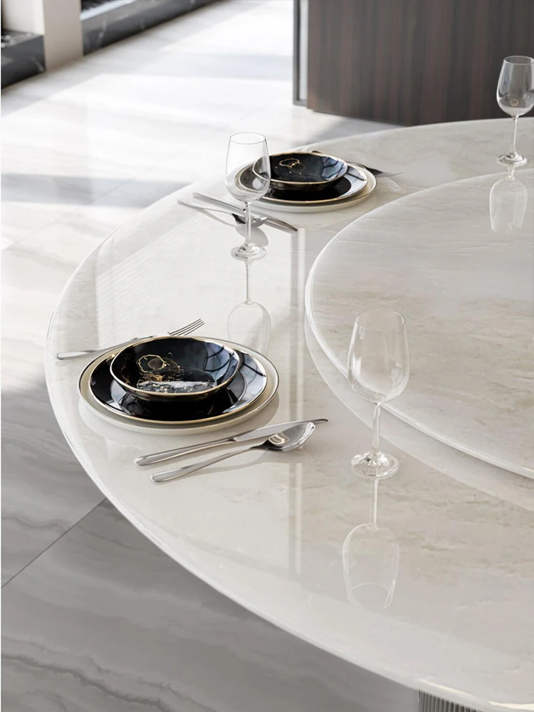 1.8メートル+100回転テーブル天然ロイヤルアイスストーン豪華ダイニングテーブル(偽物は10倍の罰)