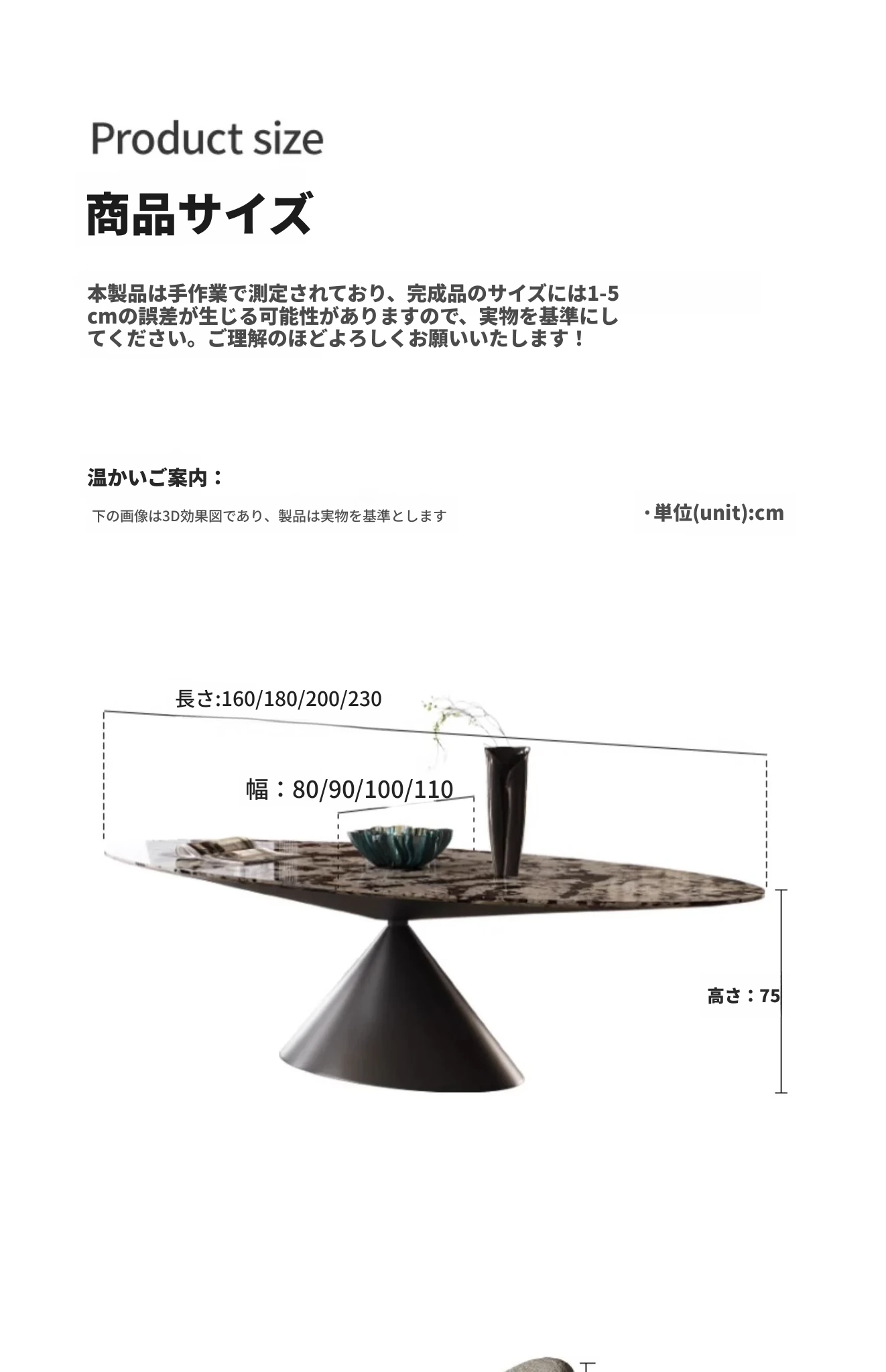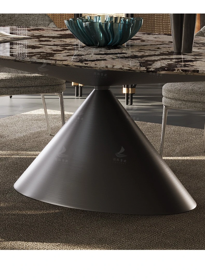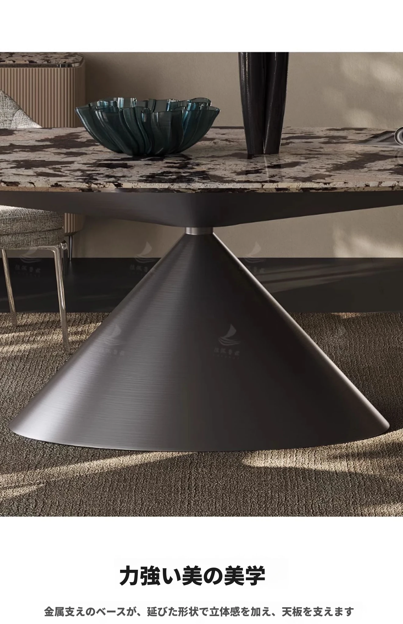 デザイン全案を実現した天然石のラグジュアリーなダイニングテーブル。モダンでシンプルな高級感を演出し、高級別荘のリビングにぴったりなエレガントな楕円形。あなたの家に特別な空間を提供します!