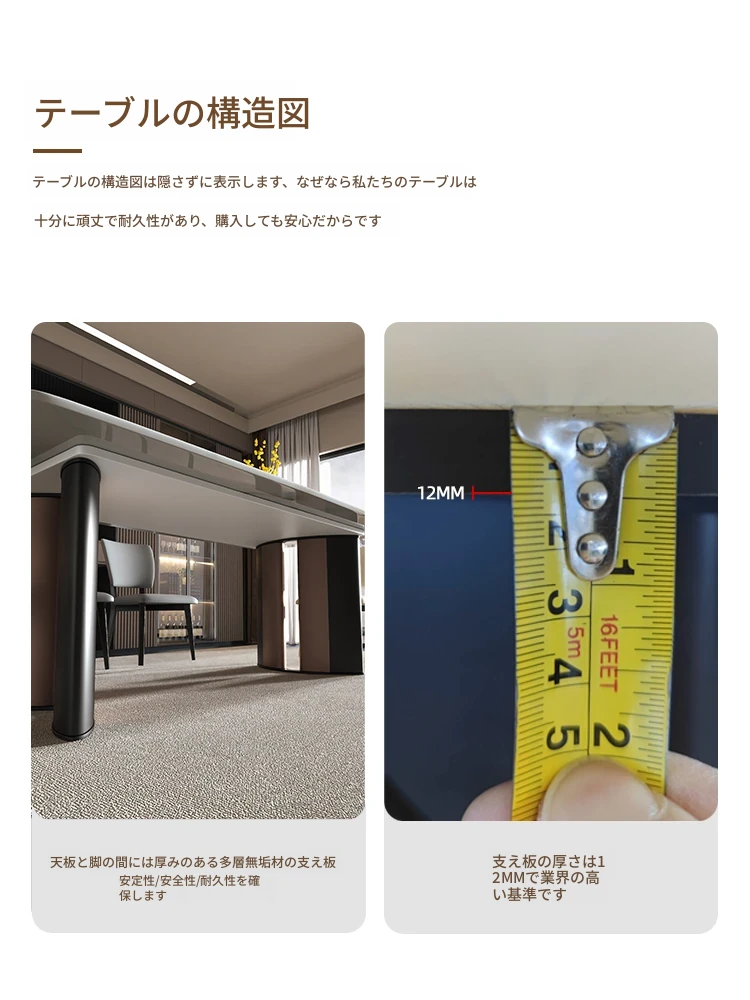 【34MM厚み増した全板無垢材底板+航空アルミフレーム】1.8*0.9m単品ダイニングテーブル