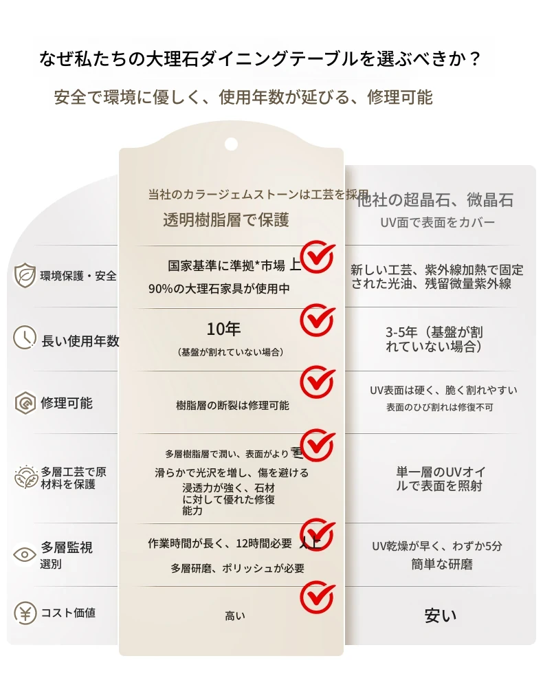 【ラグジュアリー石-天然カラージェムストーン+航空アルミフレーム】1.8*0.9m単品ダイニングテーブル