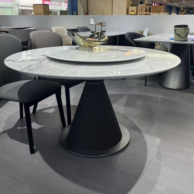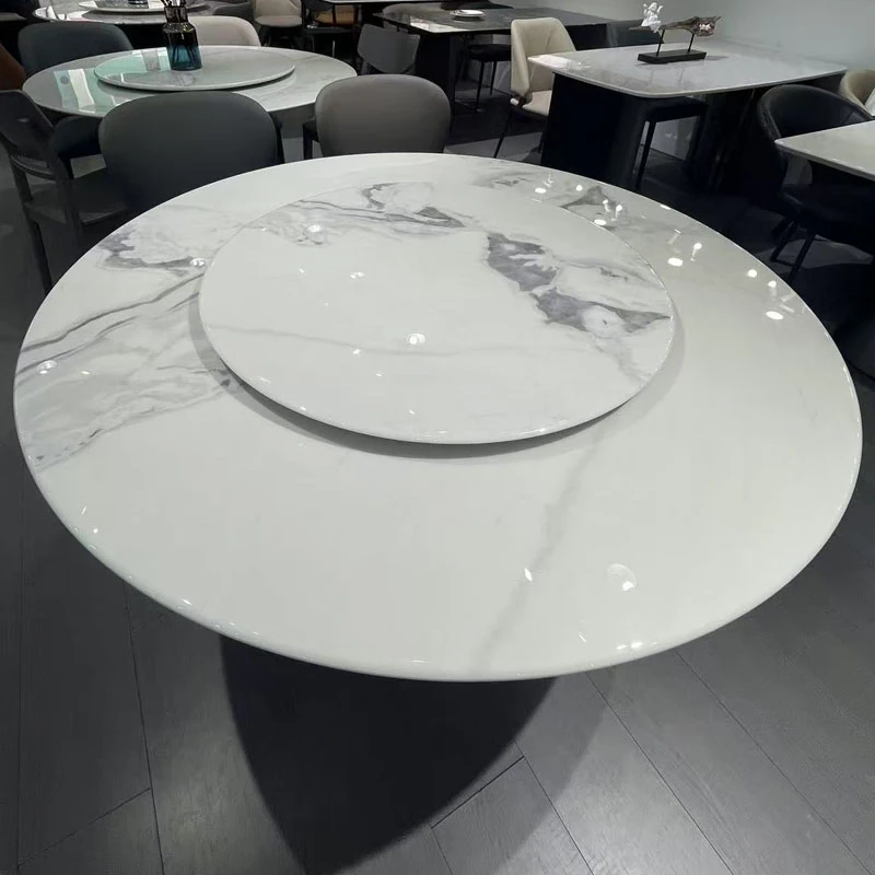 高級感溢れる大理石ダイニングテーブルセット!回転式ラウンドテーブルで、小スペースにも最適な超晶石製。実木使用で耐久性も抜群!おしゃれな商用にもぴったりな一品です。