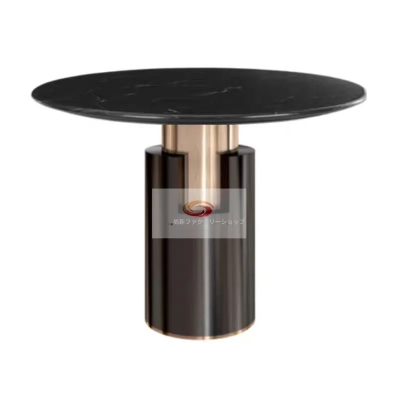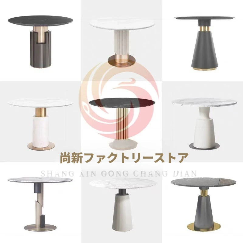 高級デザインのモダンマーブルダイニングテーブル - 別荘ホテルにぴったりな洗練されたラウンドテーブル、スタイリッシュな岩板仕上げで、贅沢な食事体験を提供します!