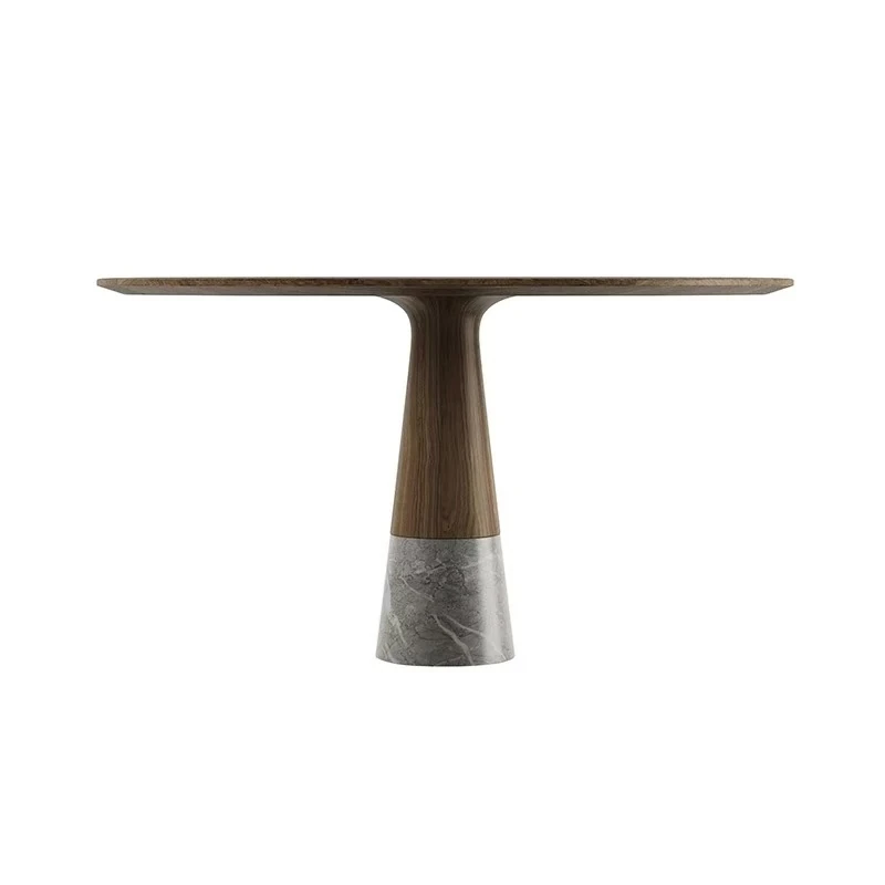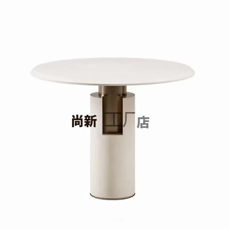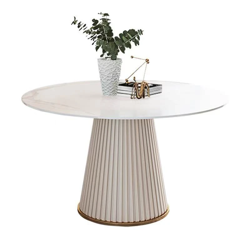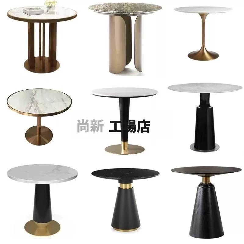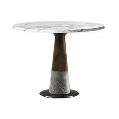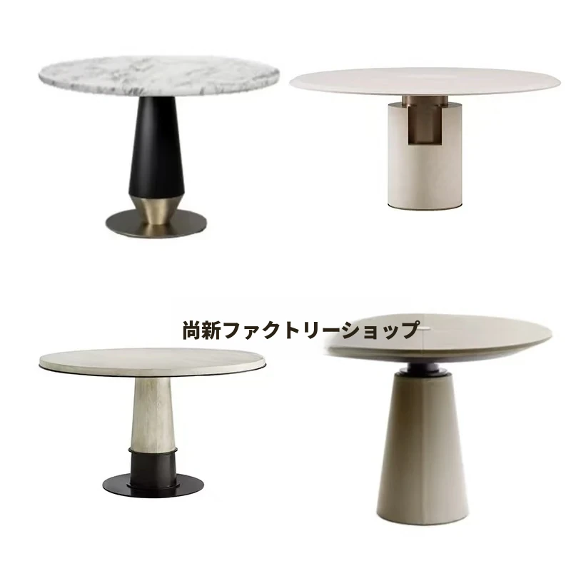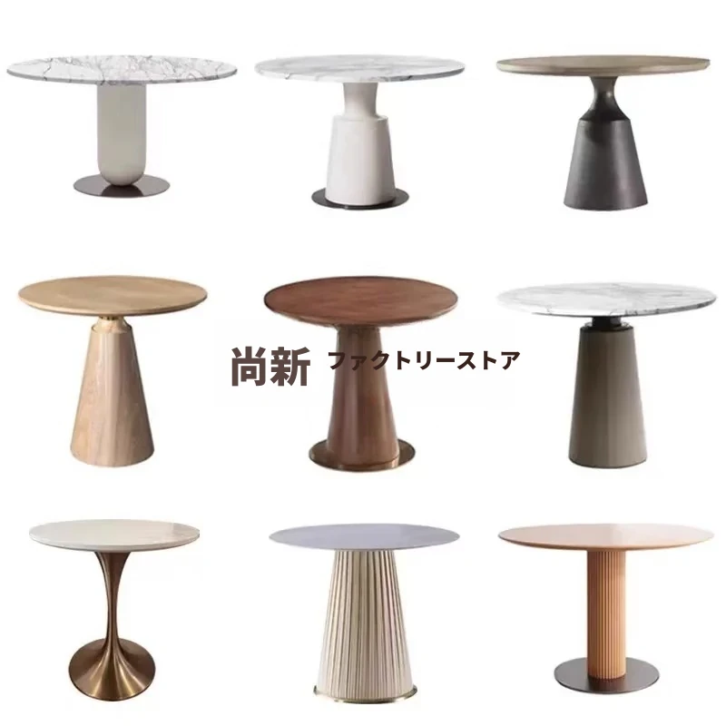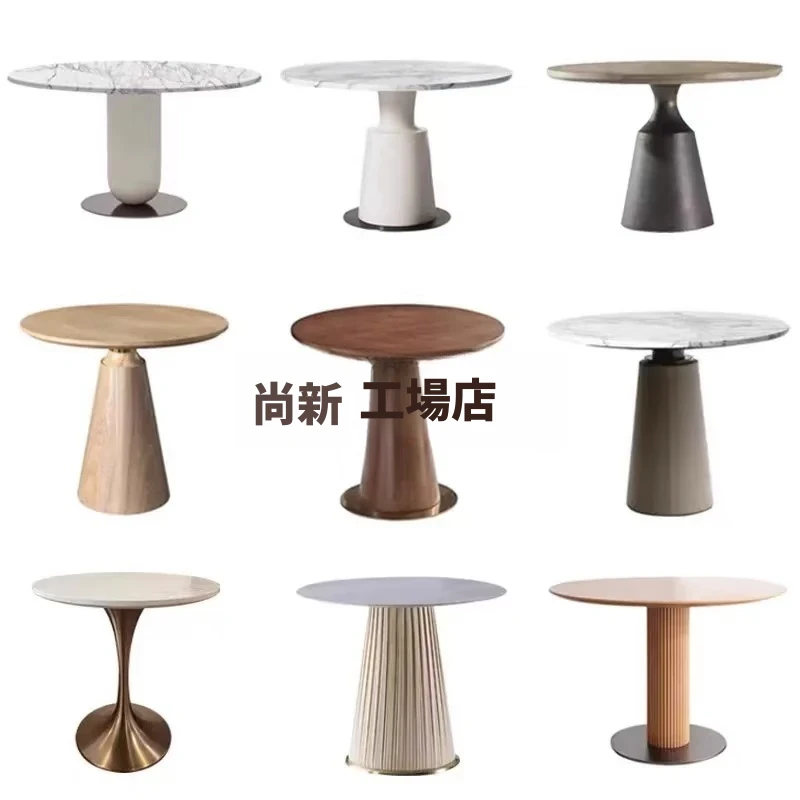 北欧風のシンプルで現代的な大理石ラウンドテーブル|高級感あふれるダイニングテーブル|カフェやレストラン、モデルルームに最適な接客・打ち合わせ用デザイン!
