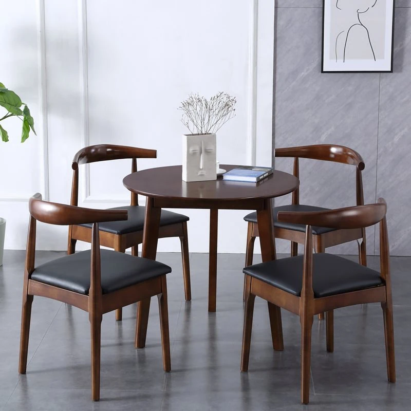 一卓四椅ウォールナット色(直径80CM)店主おすすめ