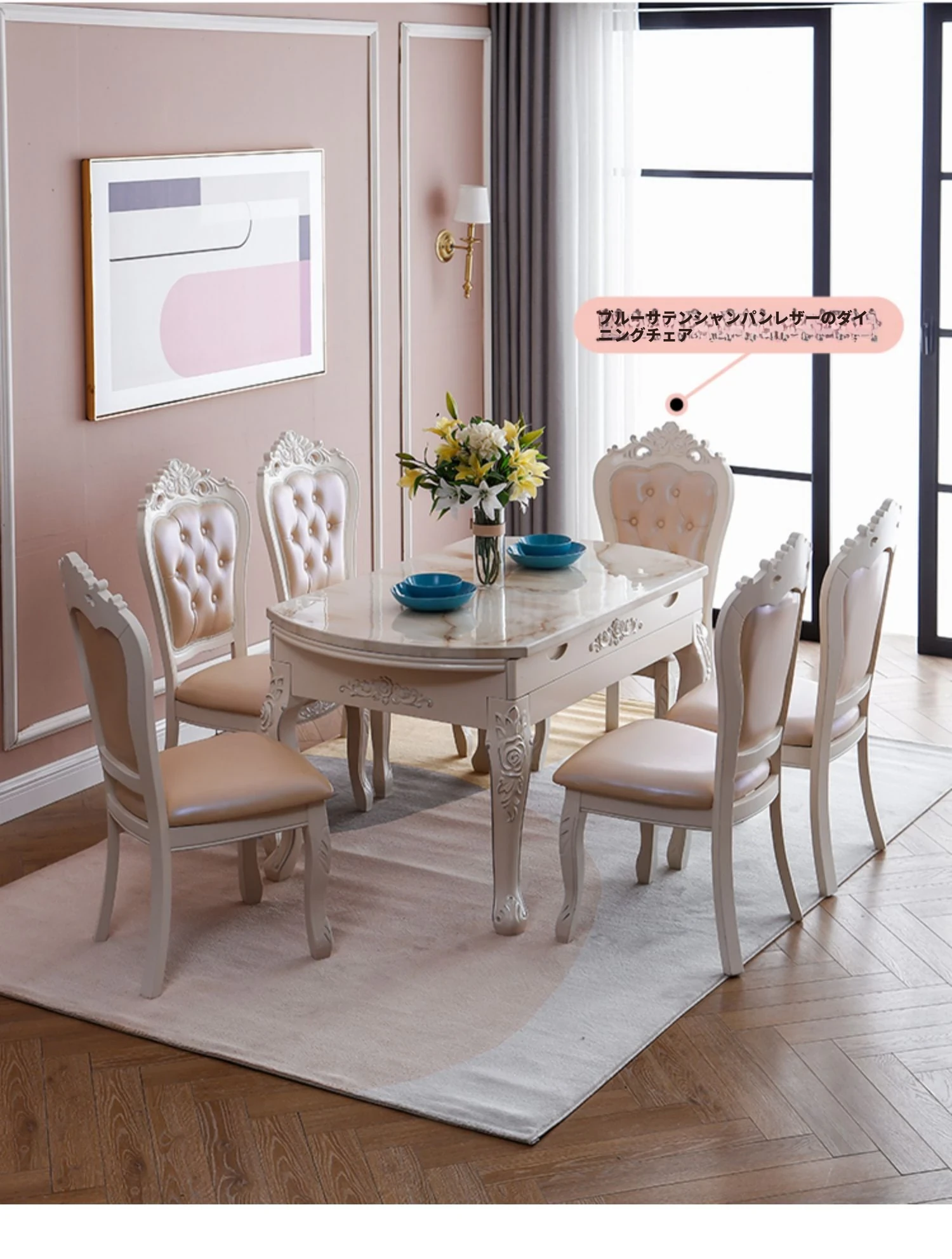 バラ系1テーブル6椅子(配送・設置込み)