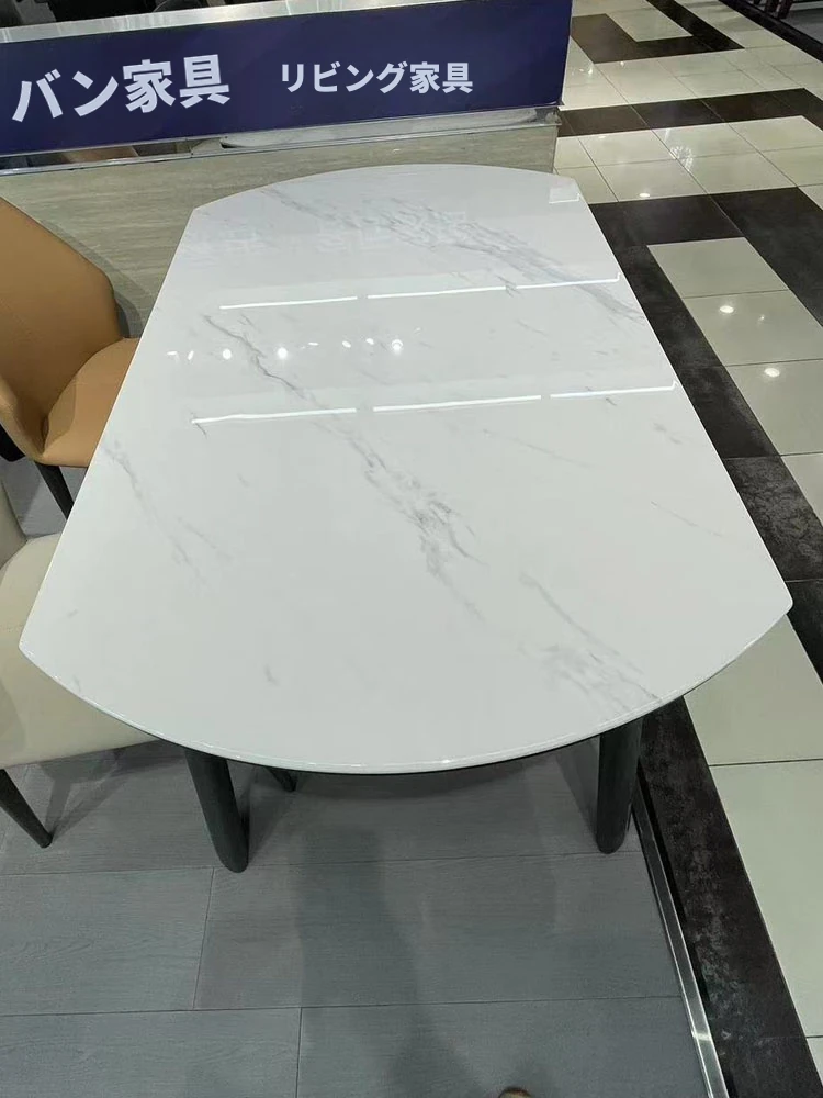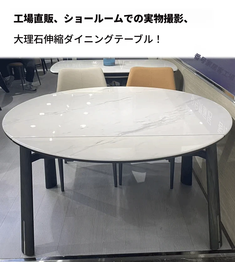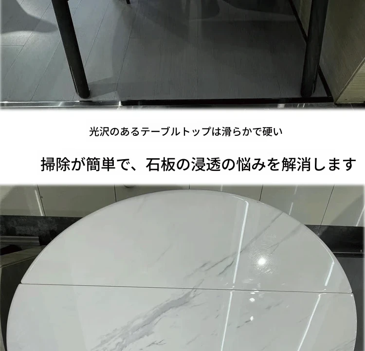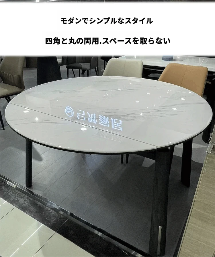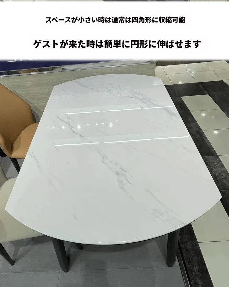 伸縮式大理石テーブル|丸・四角両用|小型住宅に最適なモダンデザインのマイクロクリスタル石製ダイニングテーブル|おしゃれで省スペース!