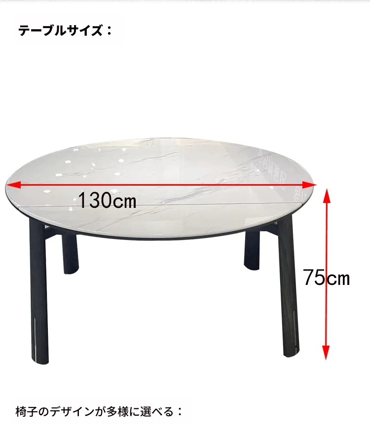 軽やかなラグジュアリー!大理石の円形ダイニングテーブルと椅子のセット。小さな家にぴったりなモダンシンプルデザイン。回転プレート付きで、食事をもっと楽しく!