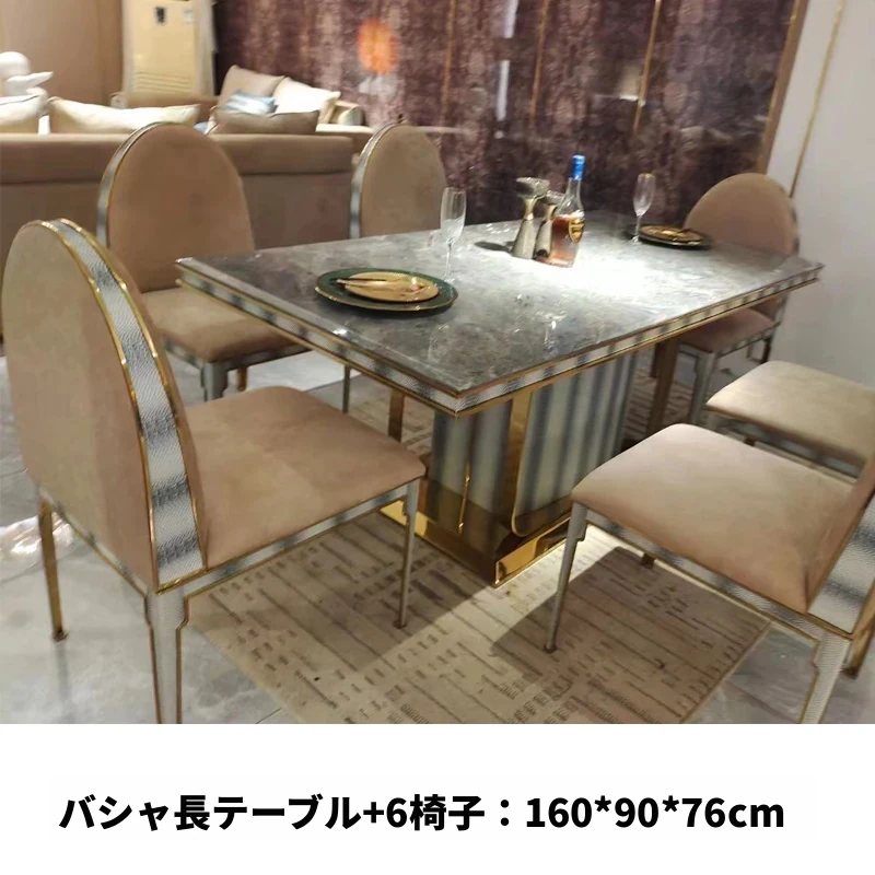 バシャ長いダイニングテーブル【1.6*0.9】+6ダイニングチェア