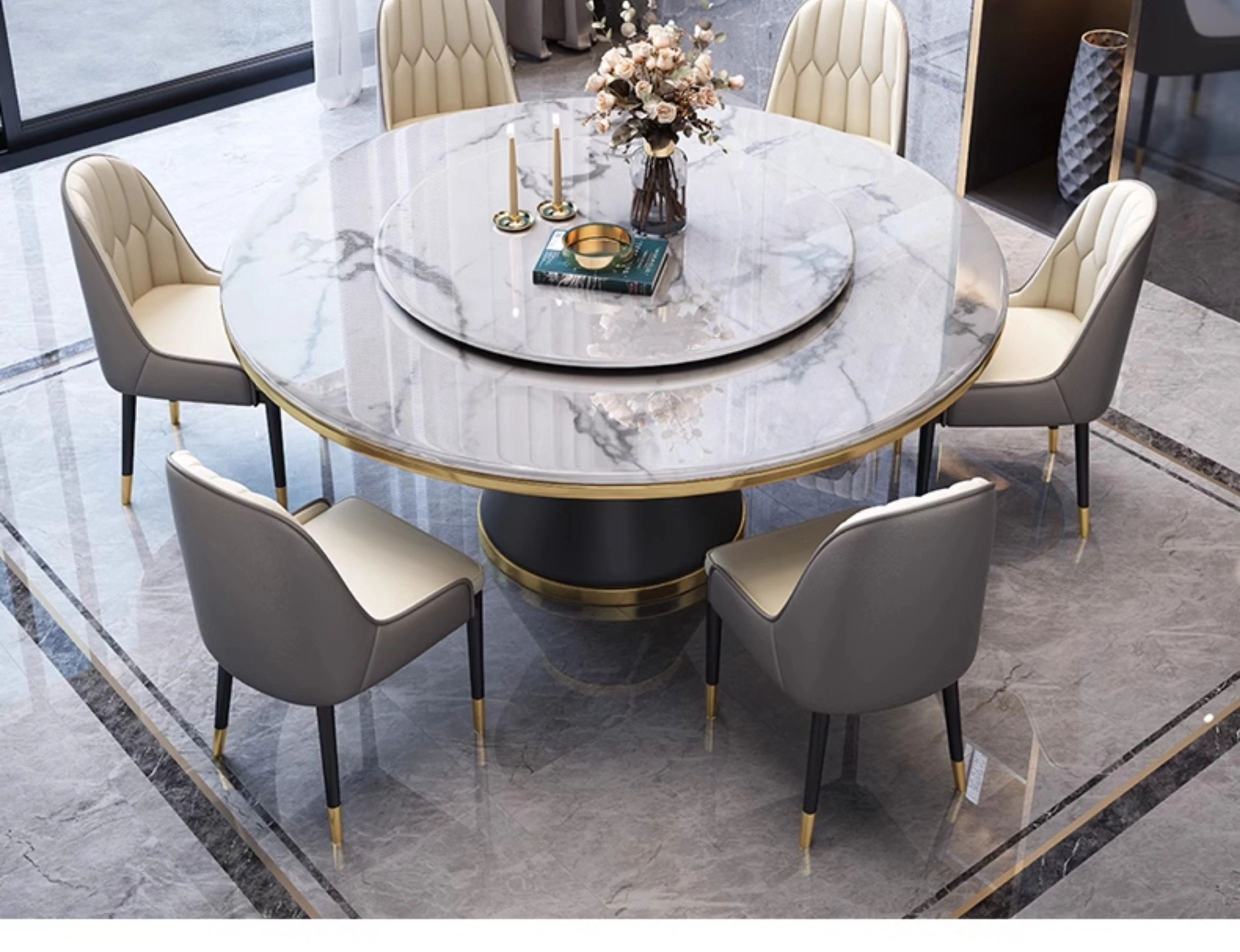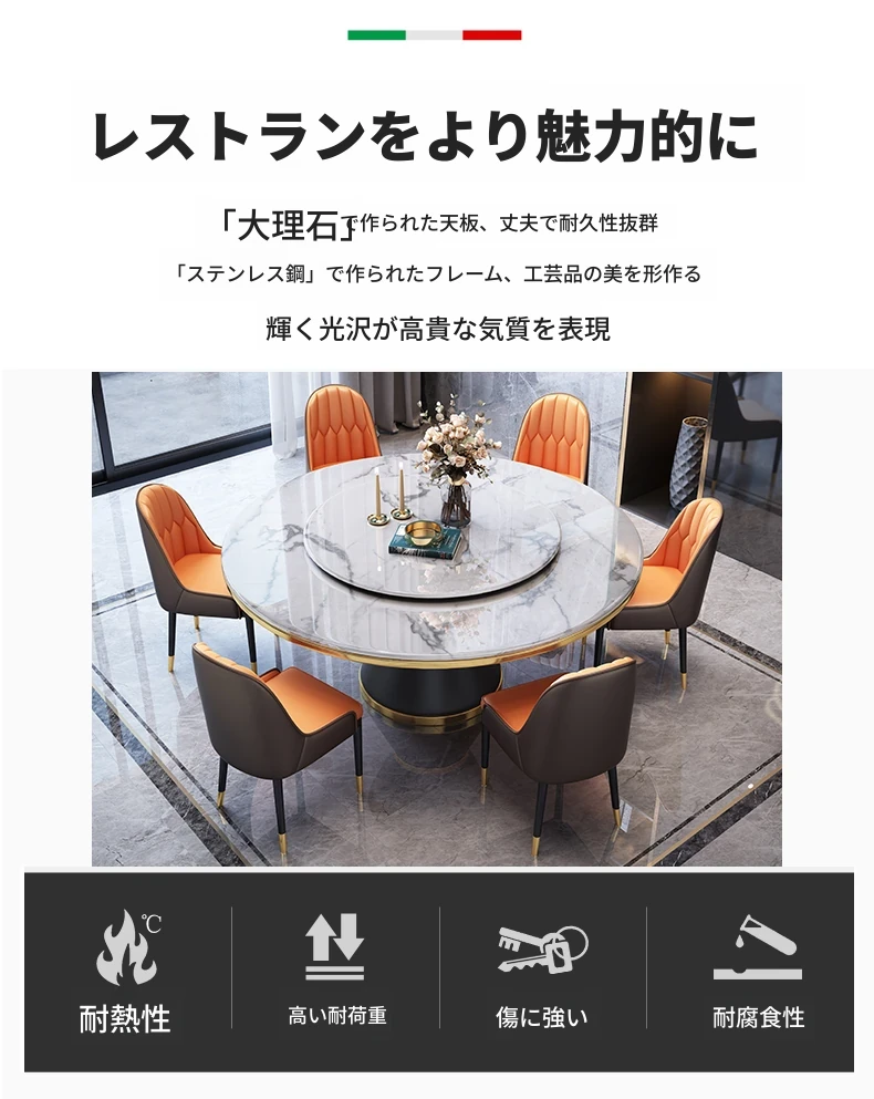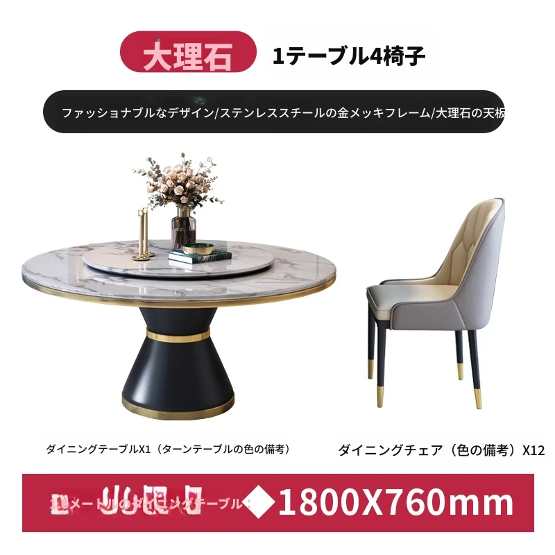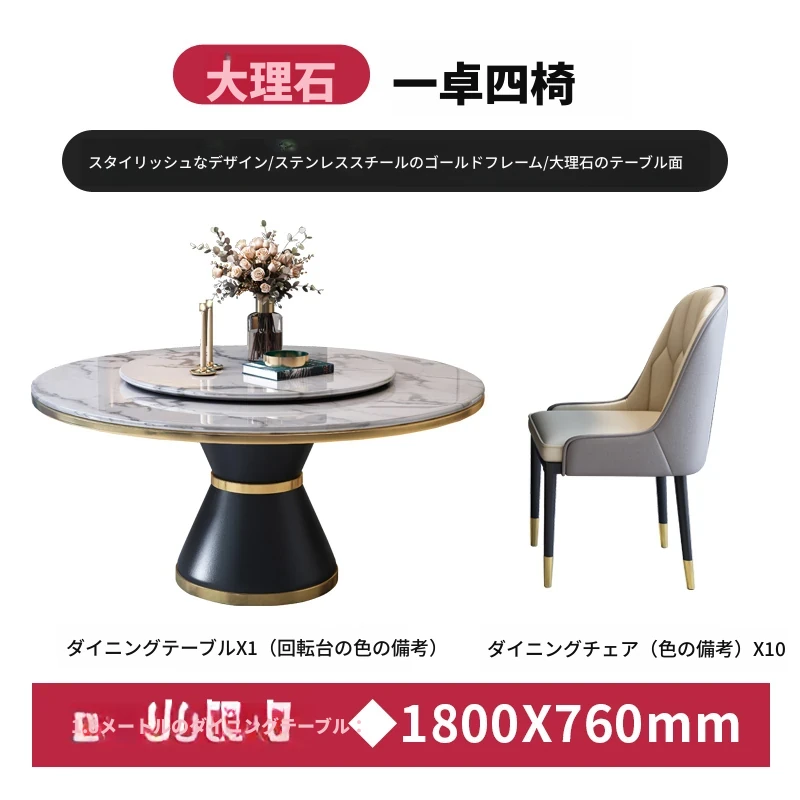 1.8メートルテーブル+12脚椅子【セット回転盤付き】 【5年保証】