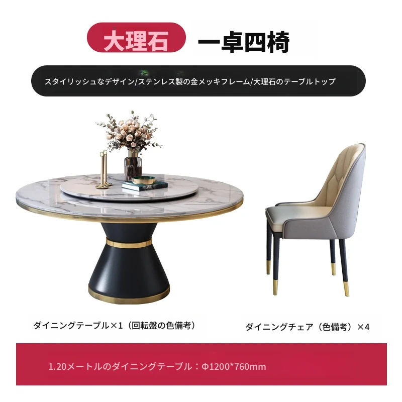 1.2メートルテーブル+四脚椅子【セット回転盤付き】 【5年保証】