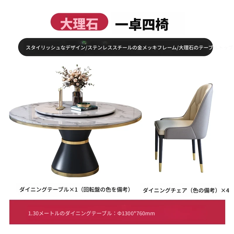 1.3メートルテーブル+四脚椅子【セット回転盤付き】 【5年保証】