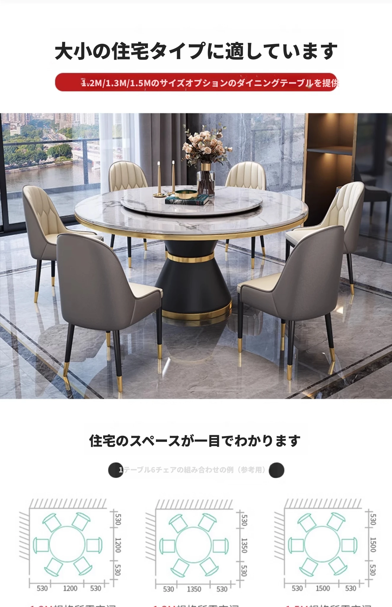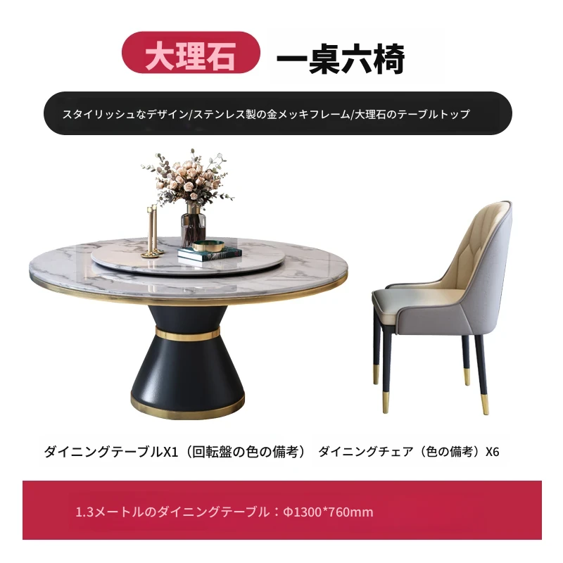1.3メートルテーブル+六脚椅子【セット回転盤付き】 【5年保証】
