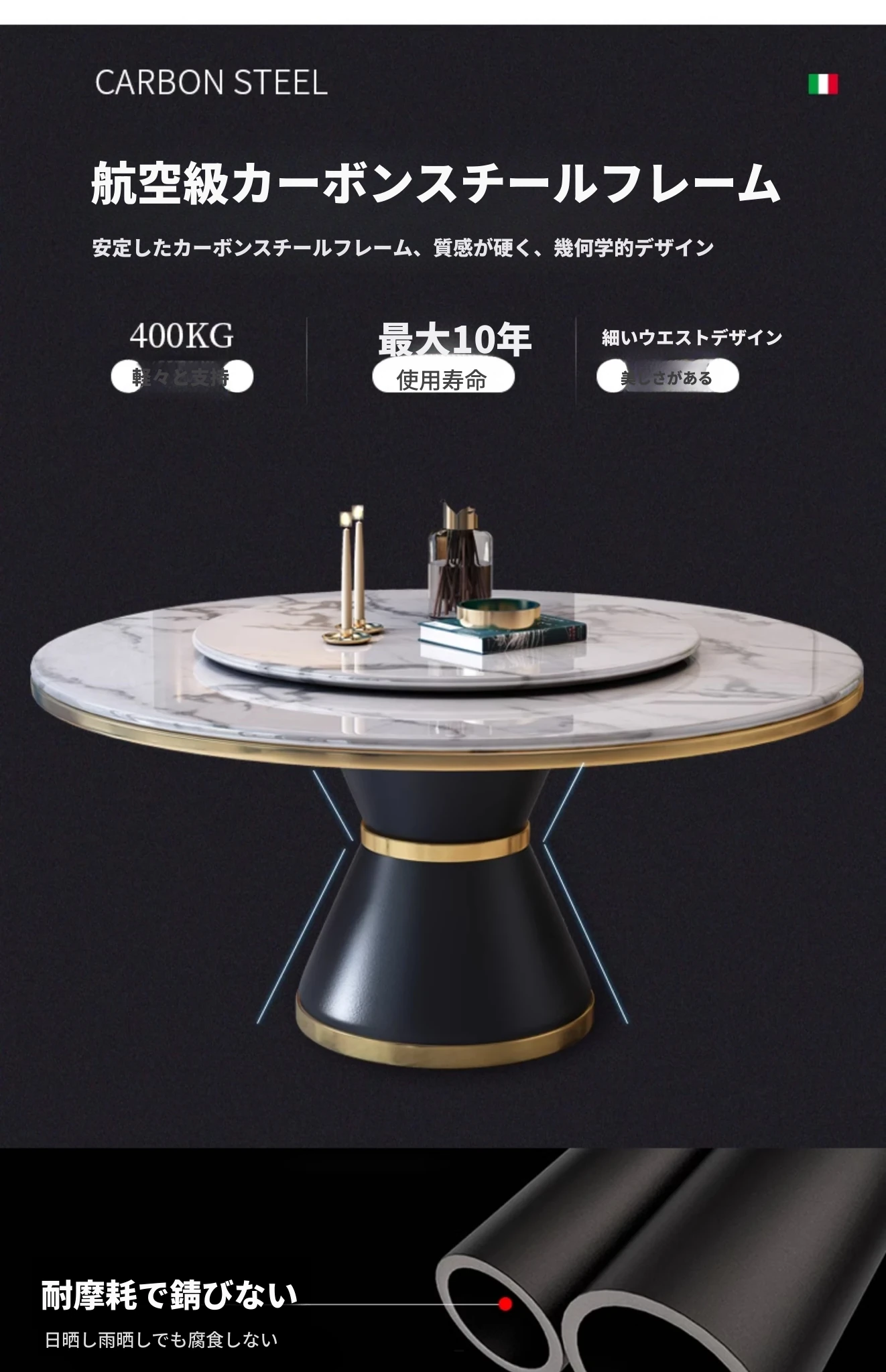 1.8メートル単独テーブル【セット回転盤付き】 【5年保証】