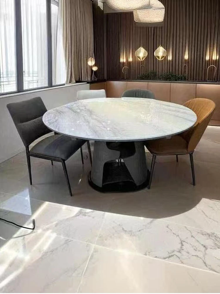 WARMフィンディ白ピカソ豪華石製ダイニングテーブル 高級輸入天然大理石サークルテーブル ヴィラ向けのラグジュアリーな食卓