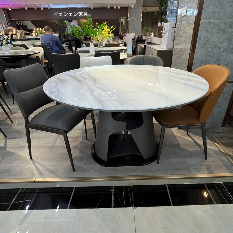現代的な大理石微晶ダイニングテーブルセット - 丸型・四角型両用、機能的で伸縮可能なデザイン、小型住宅にも最適な別荘用家具!おしゃれで実用的な空間を演出します。