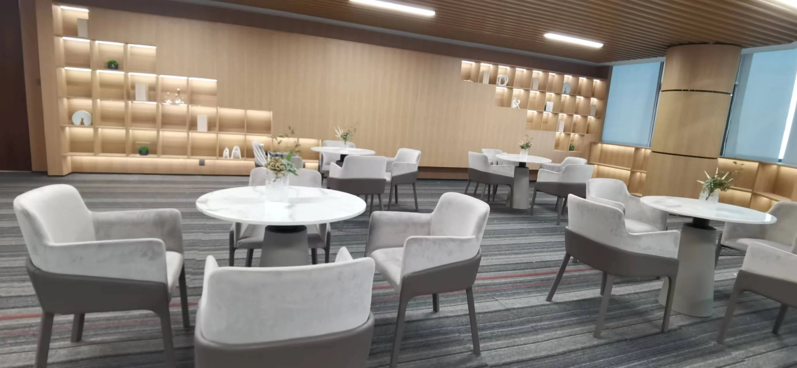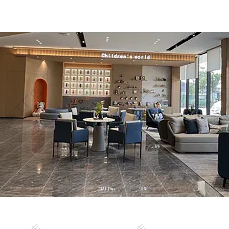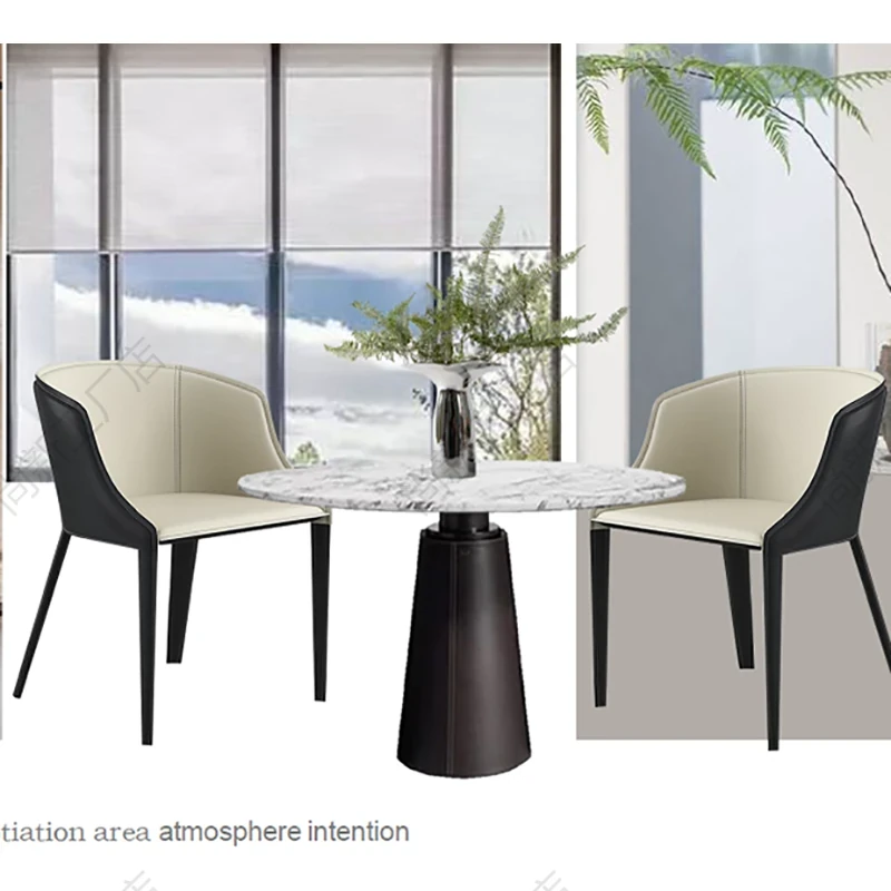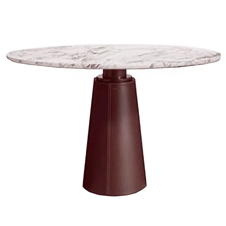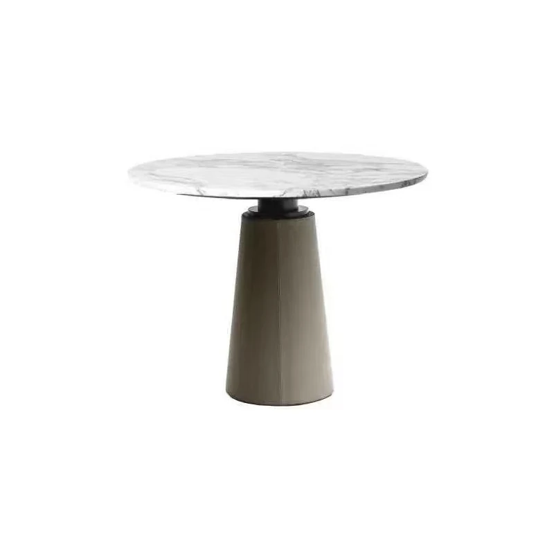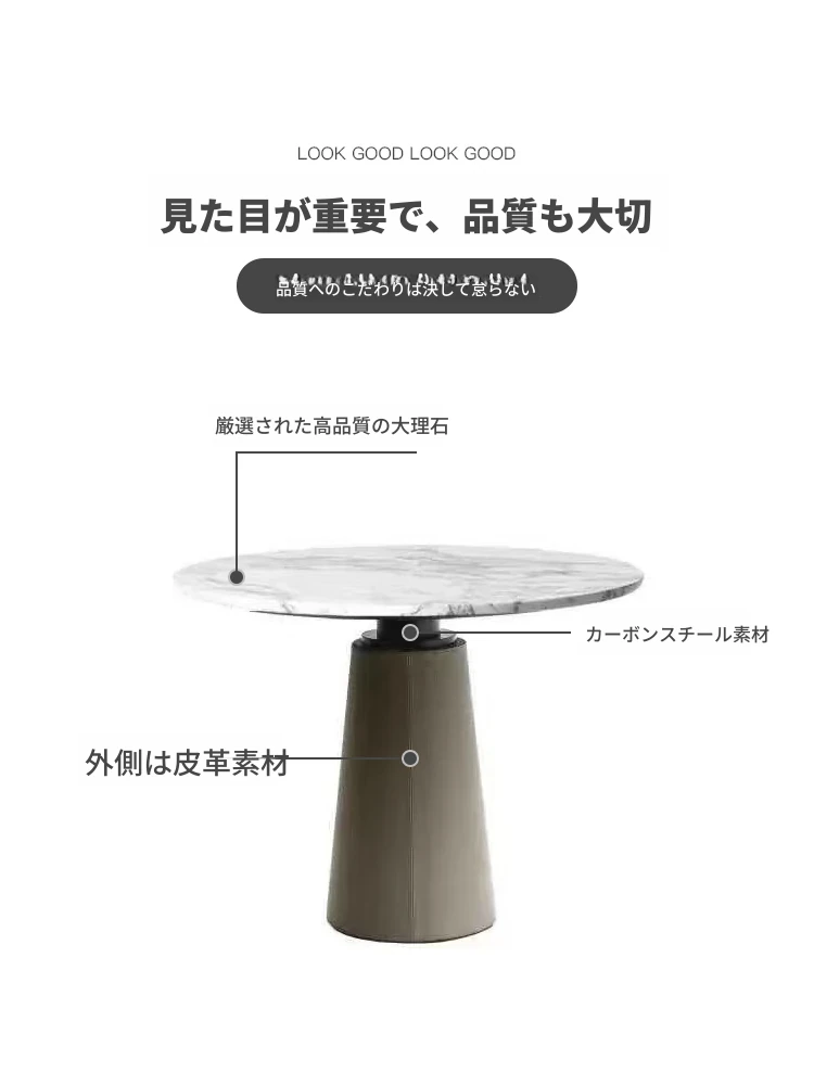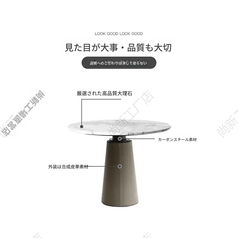 モダンな大理石製の小型ラウンドテーブル - 高級感あふれるカフェテーブル、北欧スタイルのレストランやホテルのロビーに最適!商談や接待にぴったりの洗練されたデザイン。