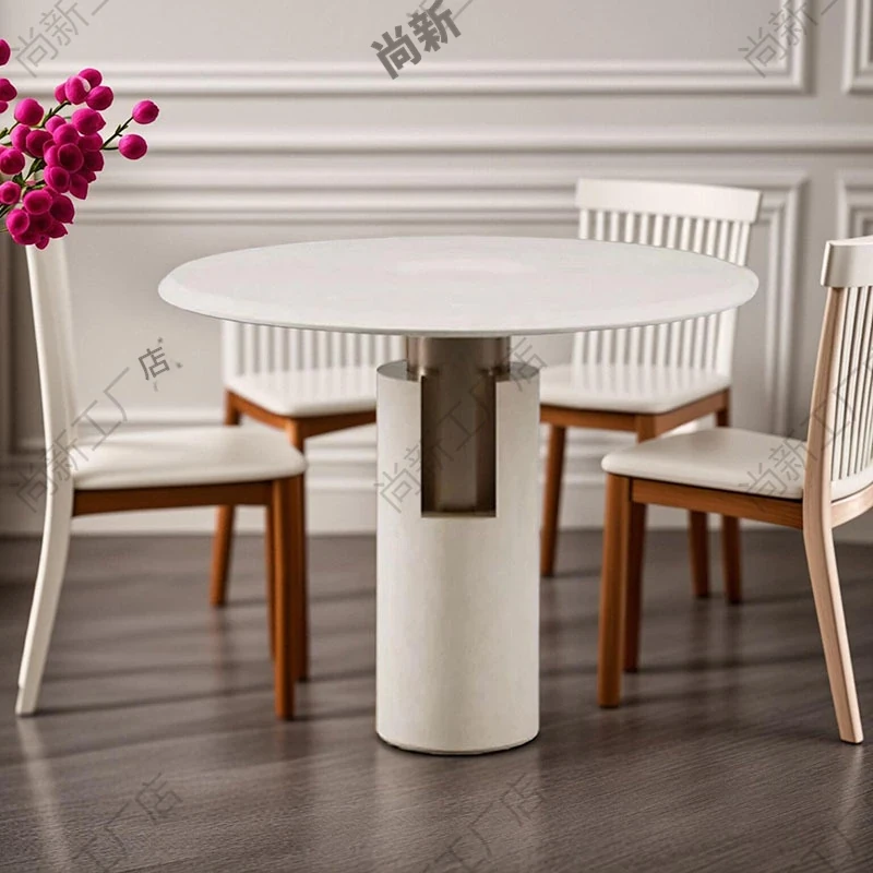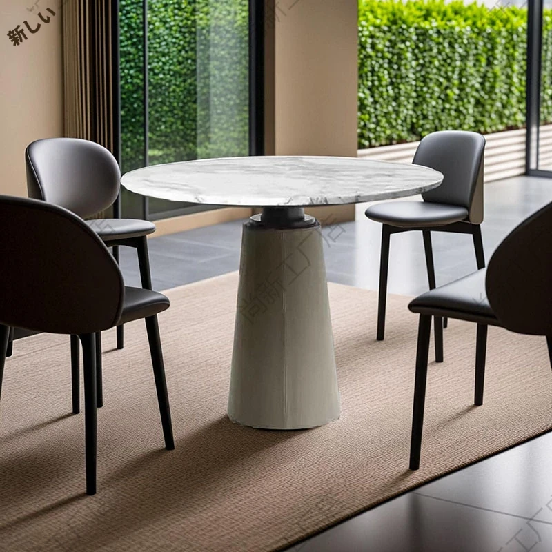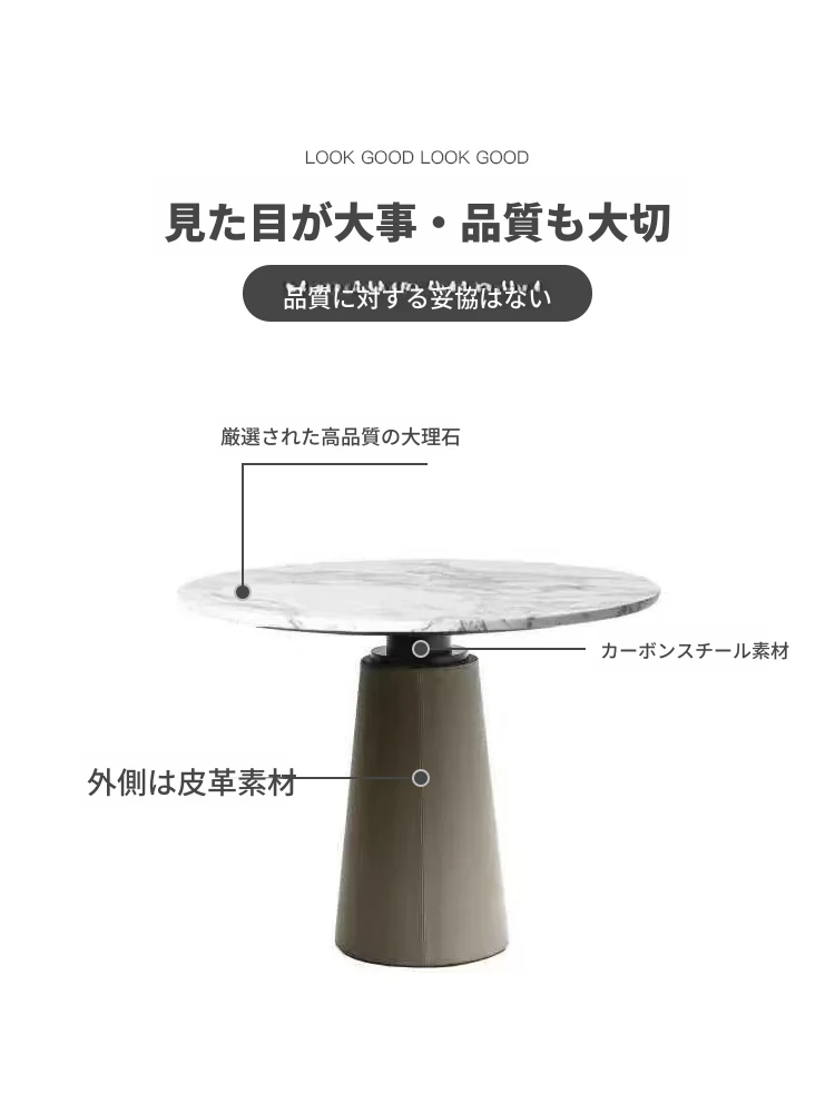 モダンな大理石の小型ラウンドテーブル - ホテル・サロンに最適!北欧スタイルのカフェテーブル、ビジネスにぴったりな高級感あふれる接待・商談用デスク。洗練されたデザインで、どんな空間にもマッチします!