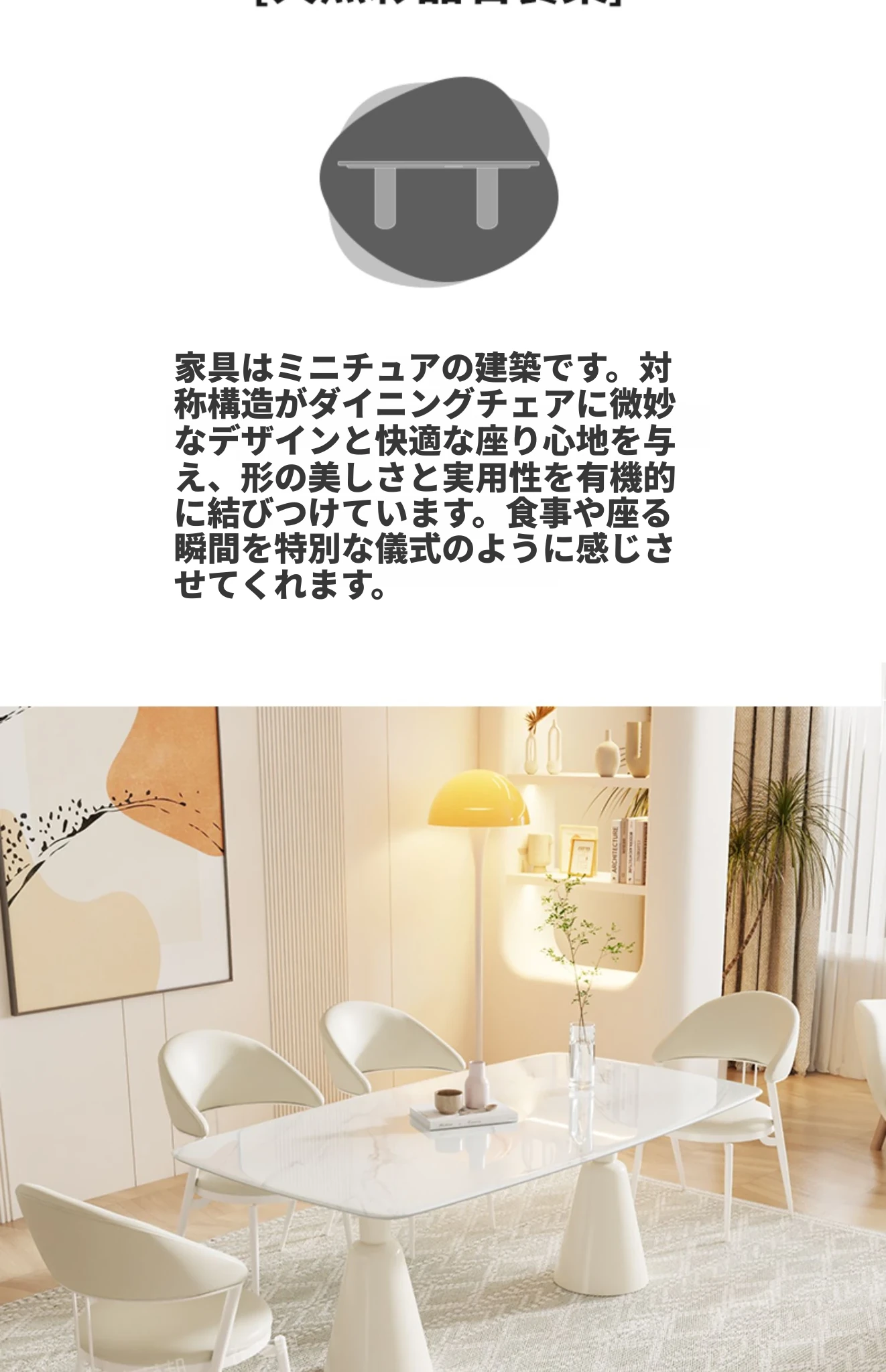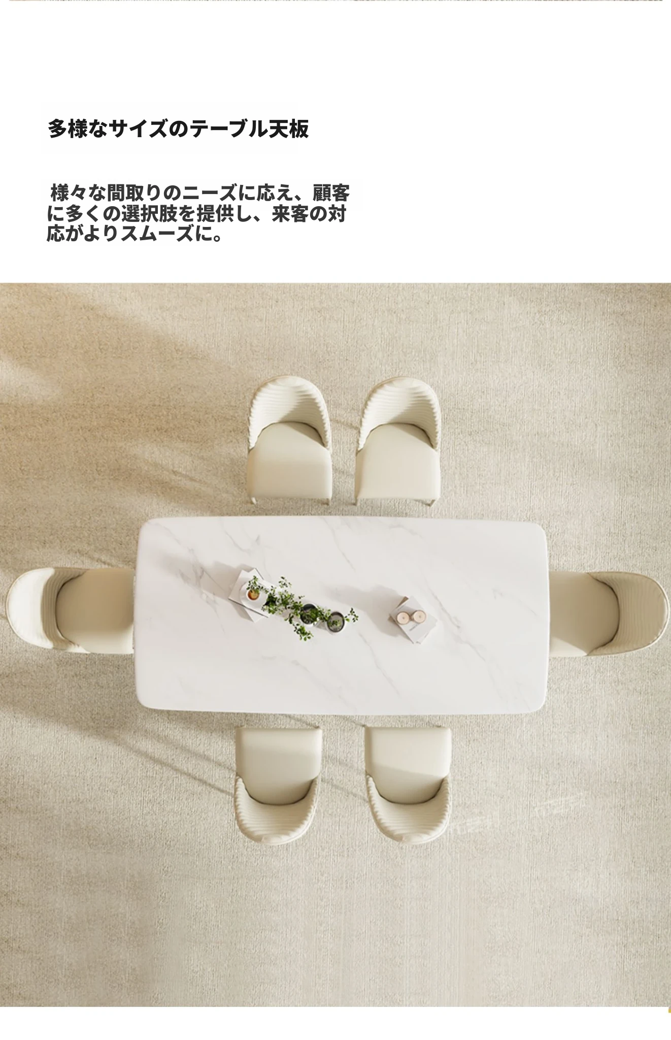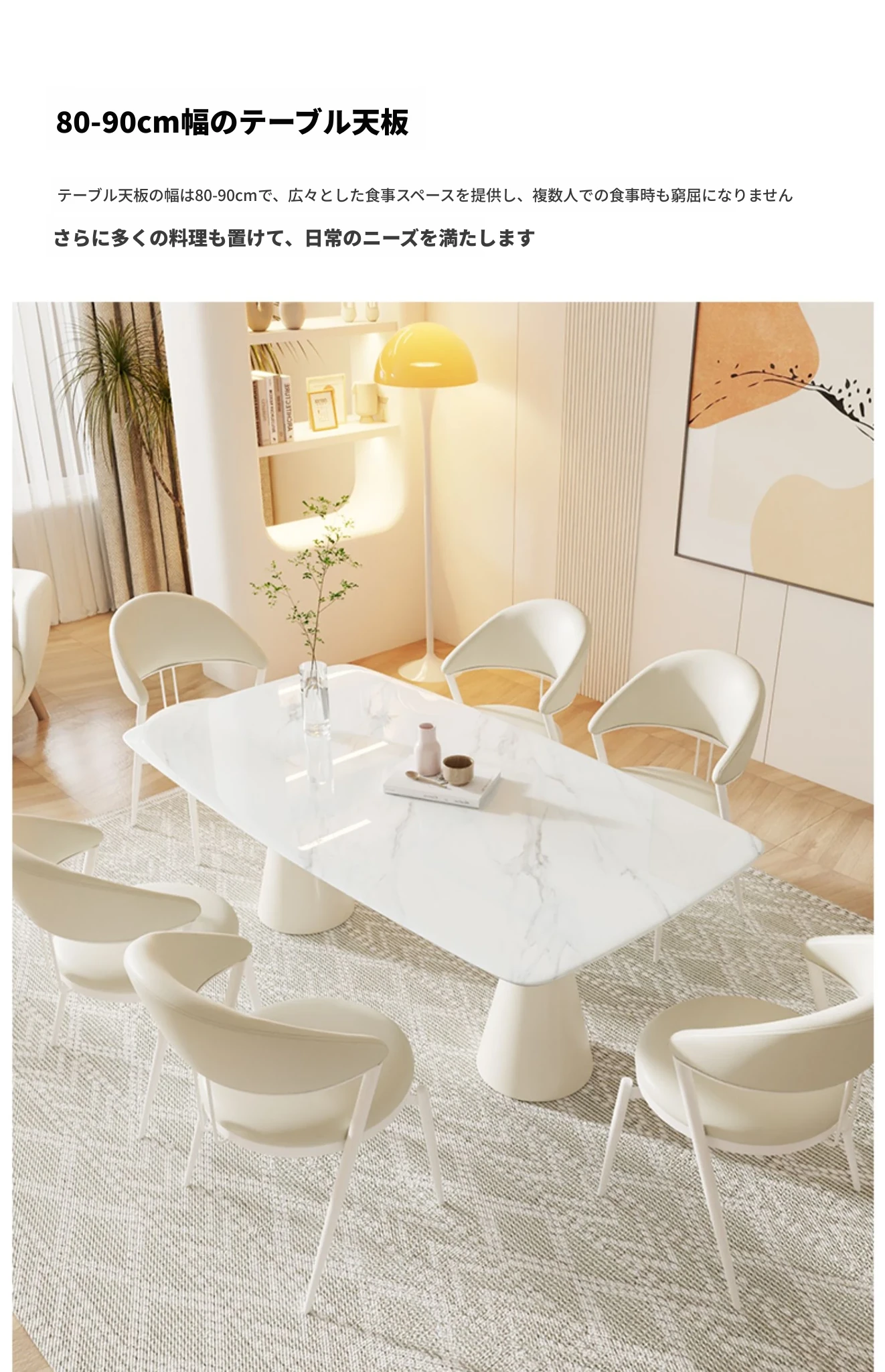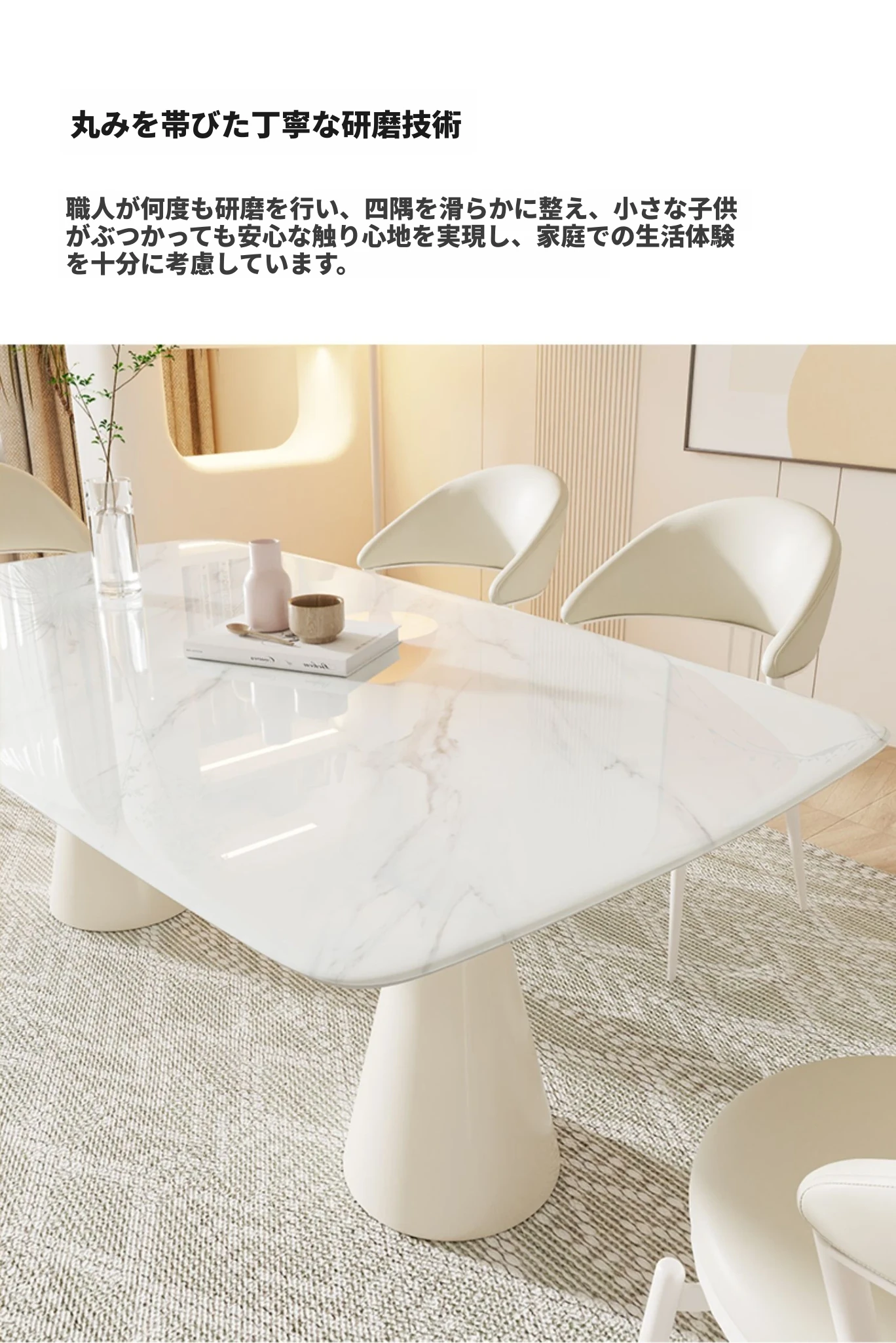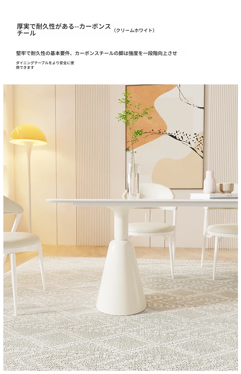 シンプルで洗練されたクリーム風大理石のダイニングテーブル&チェアセット - モダンな小型住宅にぴったりの長方形ダイニングテーブル「バグリ」