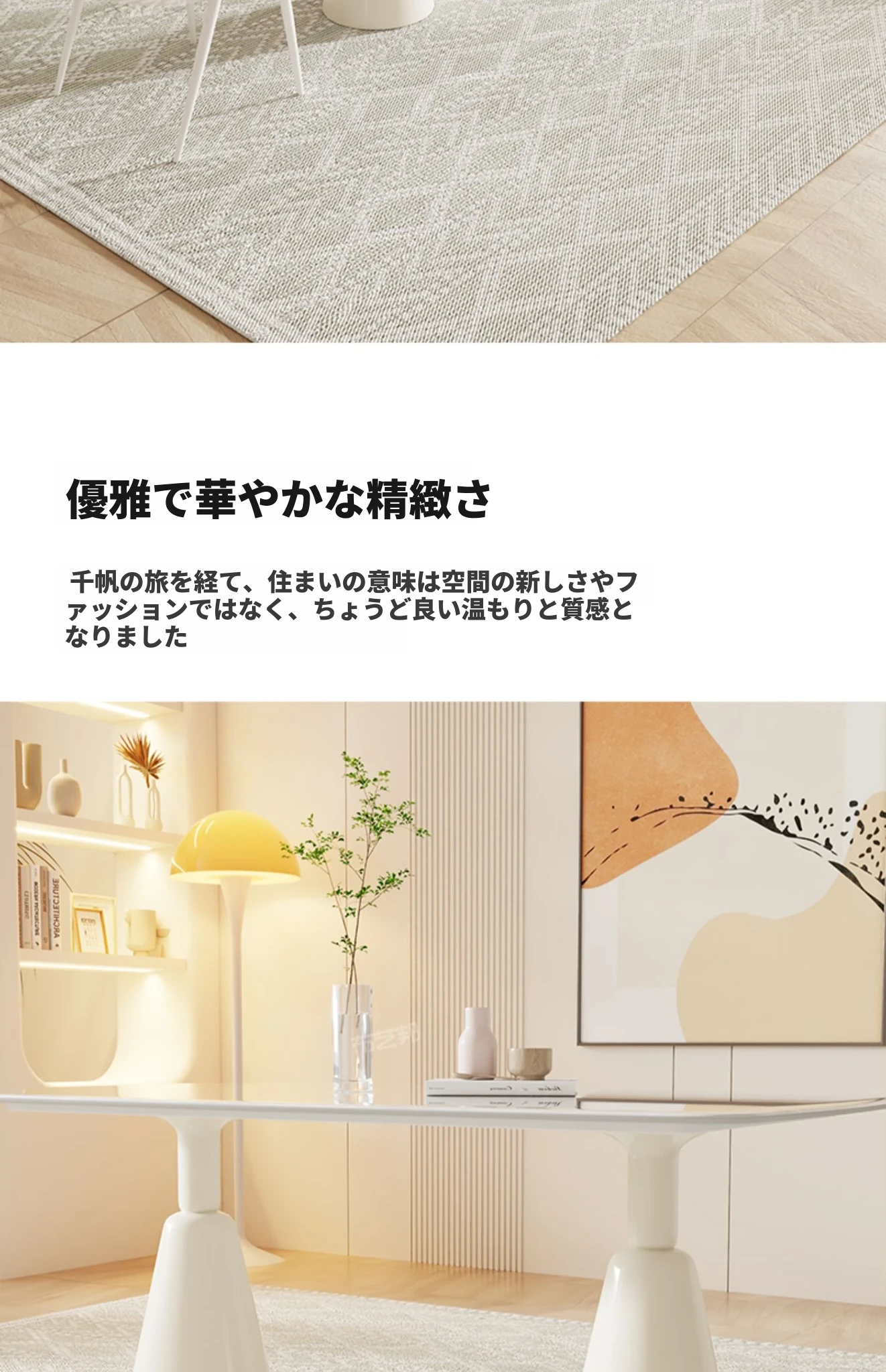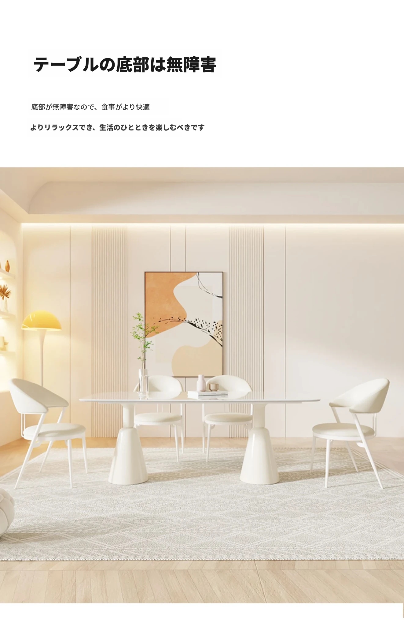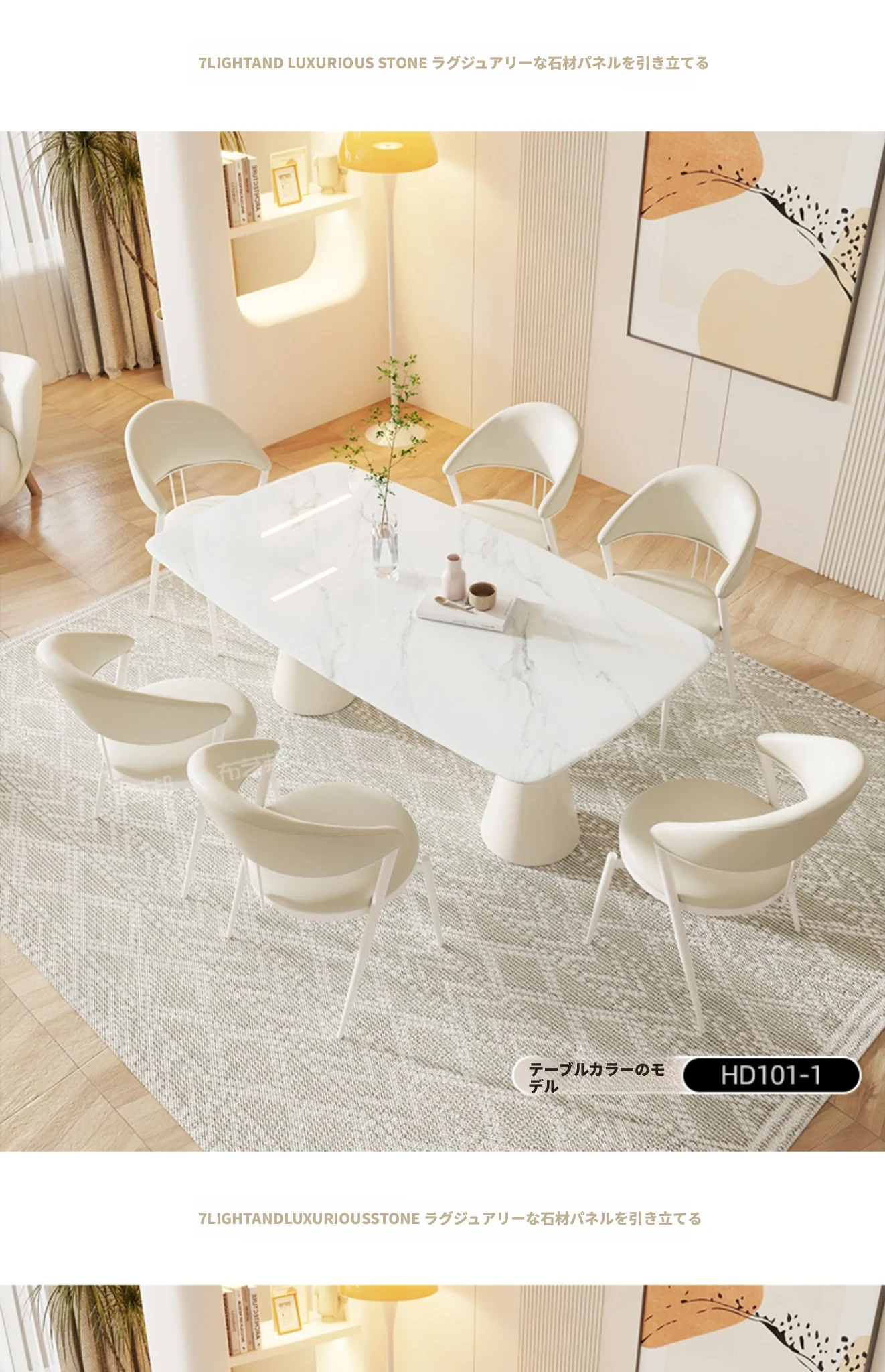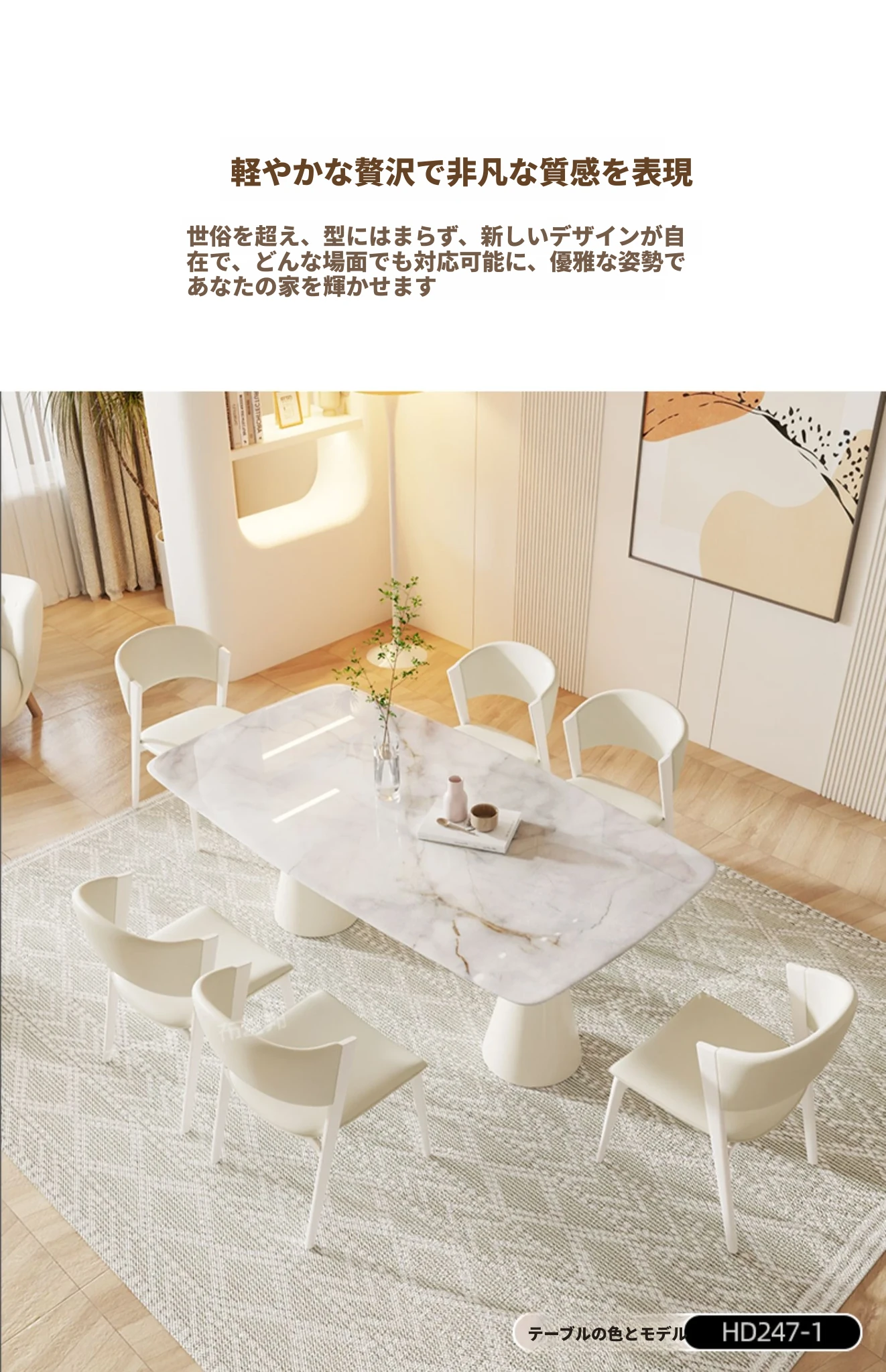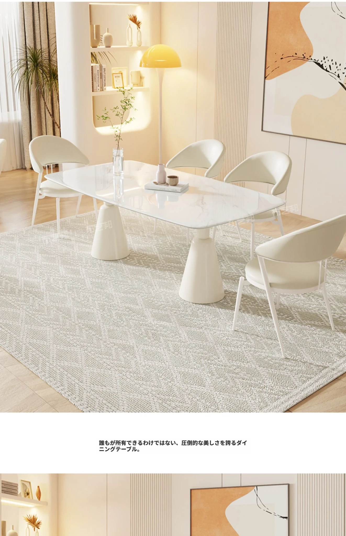 シンプルで洗練されたクリーム風大理石のダイニングテーブル&チェアセット - モダンな小型住宅にぴったりの長方形ダイニングテーブル「バグリ」