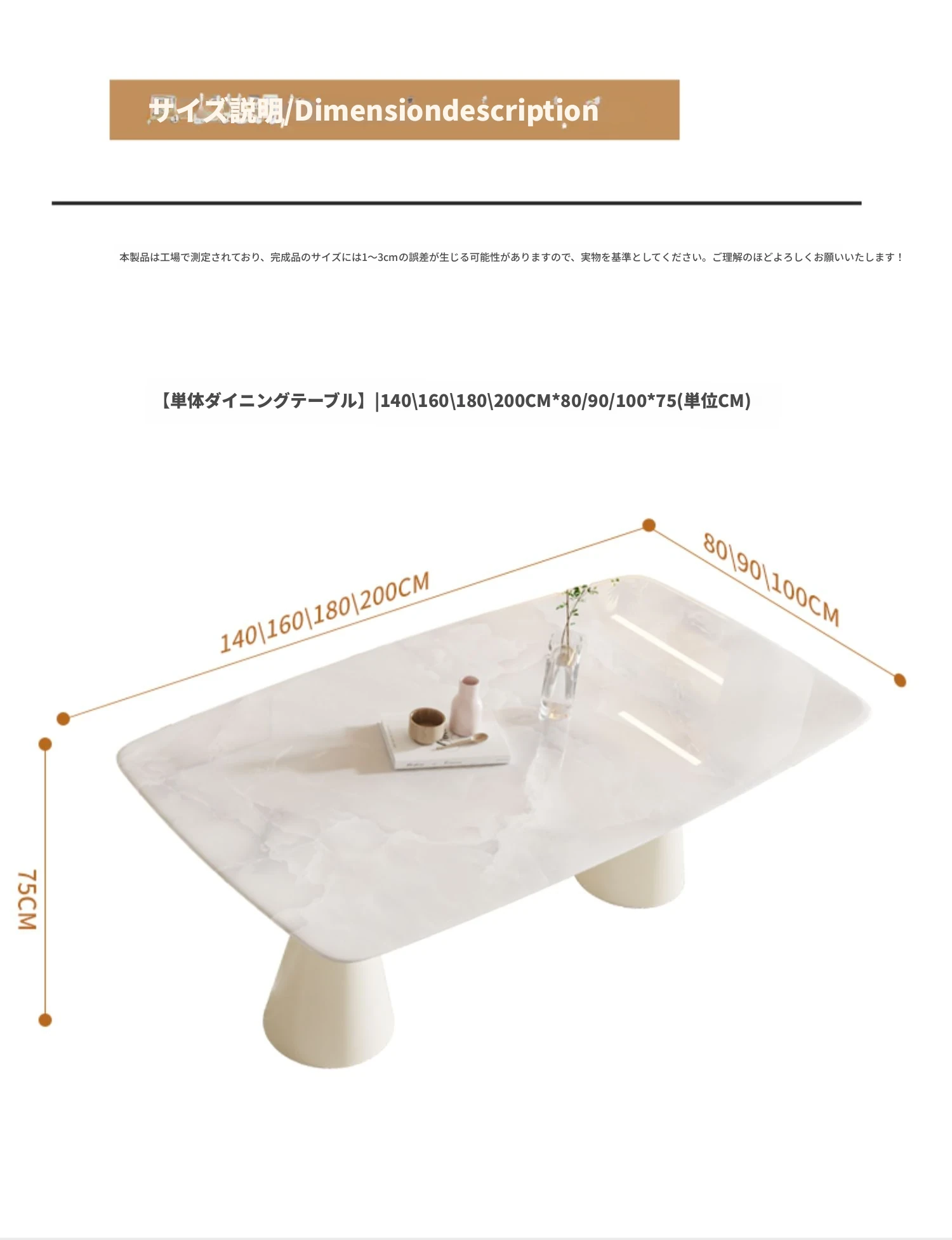 【ラグジュアリー・カラージェムストーン大理石】1.4M単独ダイニングテーブル