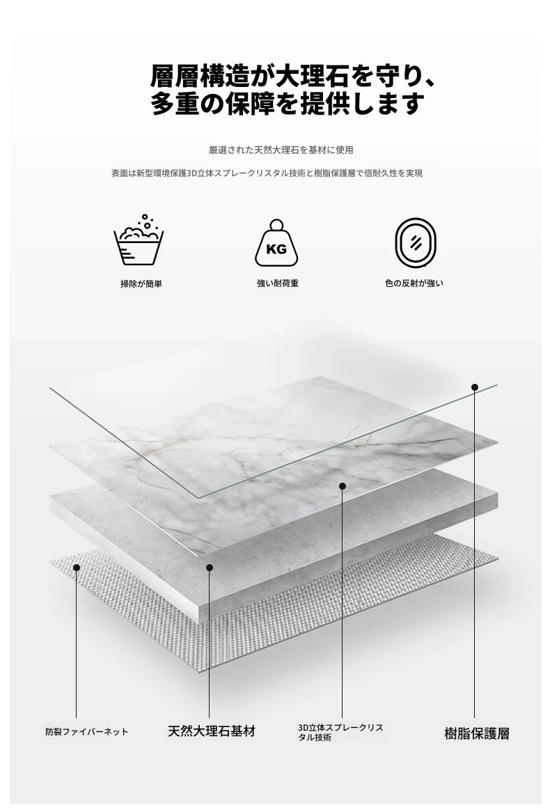 【ラグジュアリー・カラージェムストーン大理石】1.8M単独ダイニングテーブル