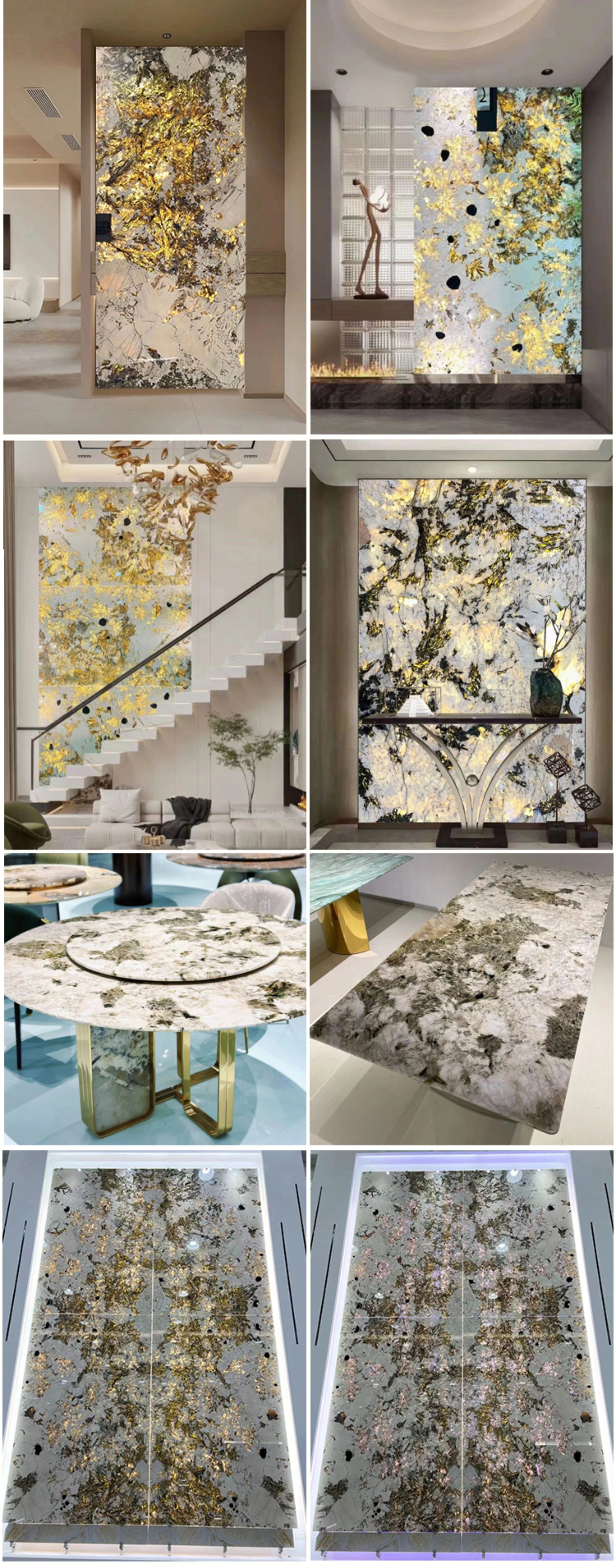 WARMカリーアイスジェード豪華石製ダイニングテーブル|輸入軽奢天然大理石使用|佛山製長方形高級食卓|洗練されたデザインで特別なひとときを演出!
