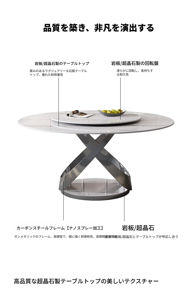 超クリスタルストーン単テーブル【素材アップグレード★セットの回転盤付き】