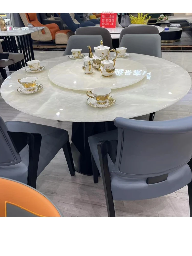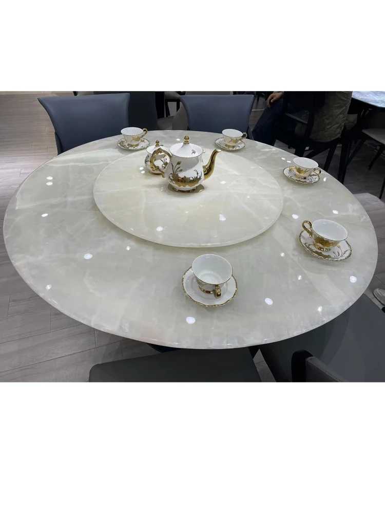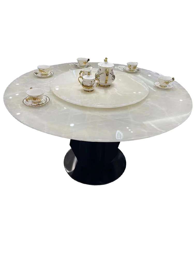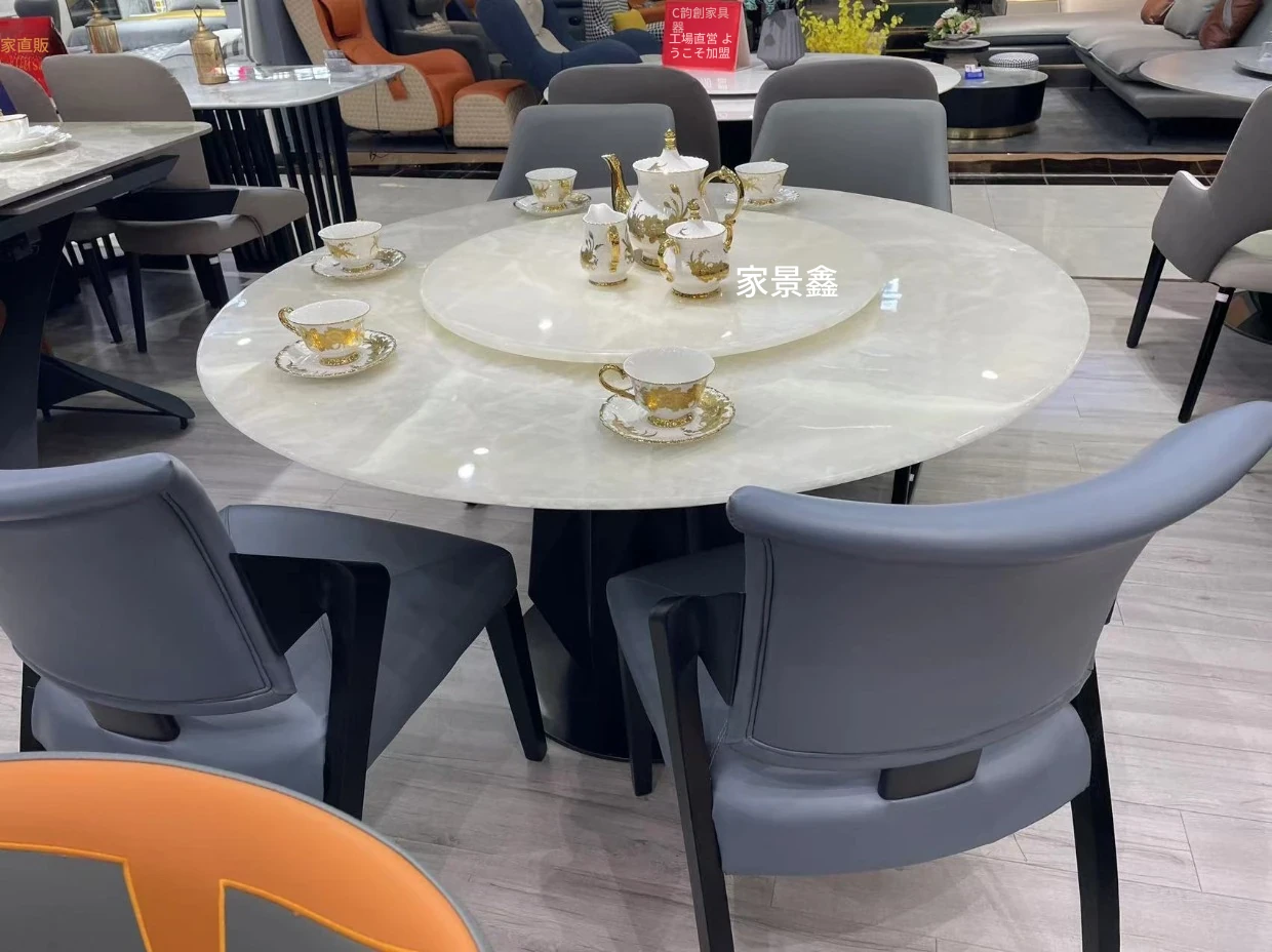 白冰玉天然大理石製のモダンシンプルな円形ダイニングテーブル - 小スペースに最適なスタイリッシュな食卓で、家族や友人との楽しいひとときを演出します!
