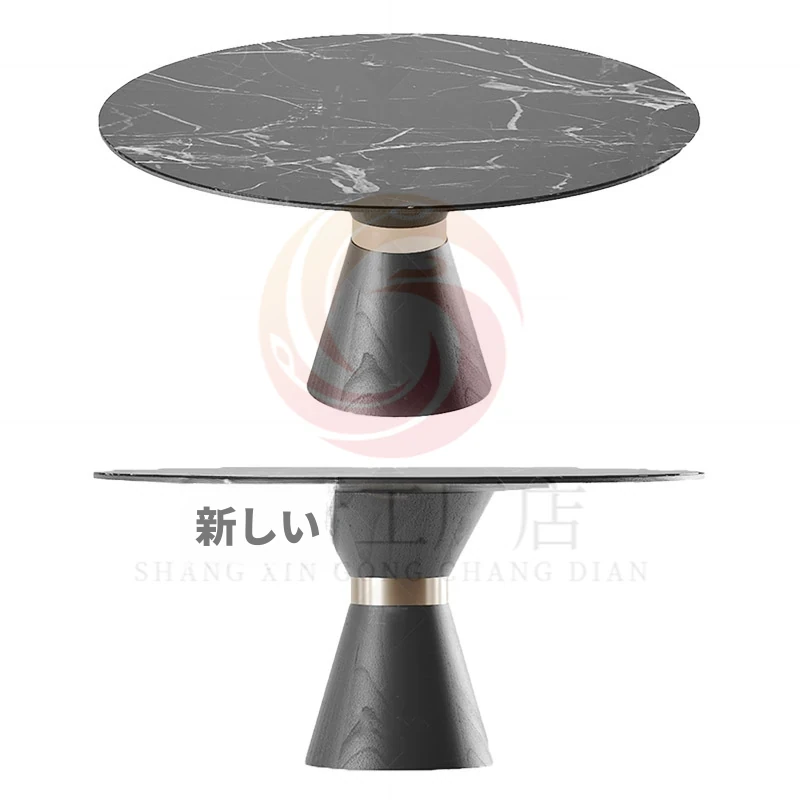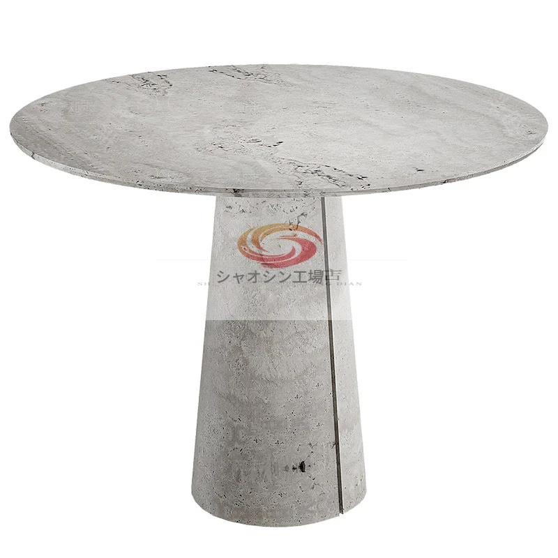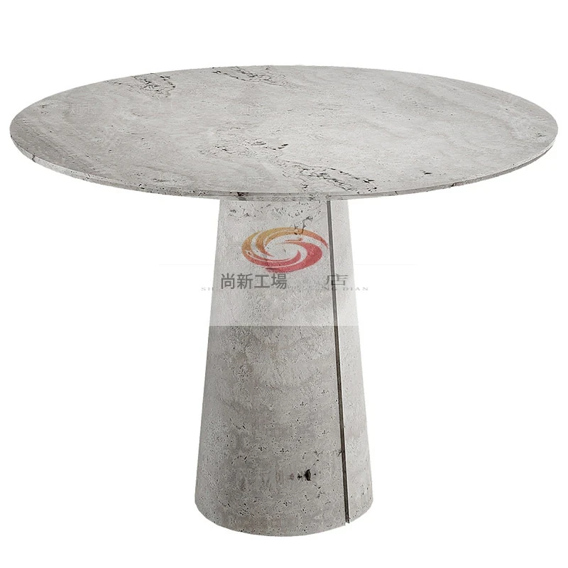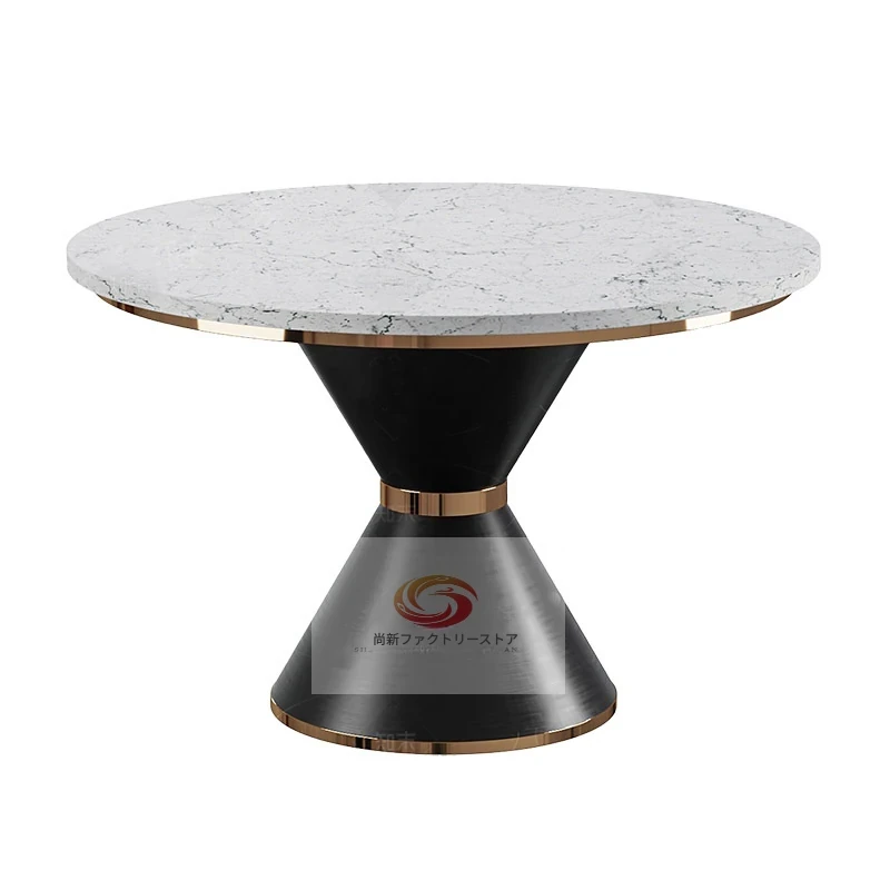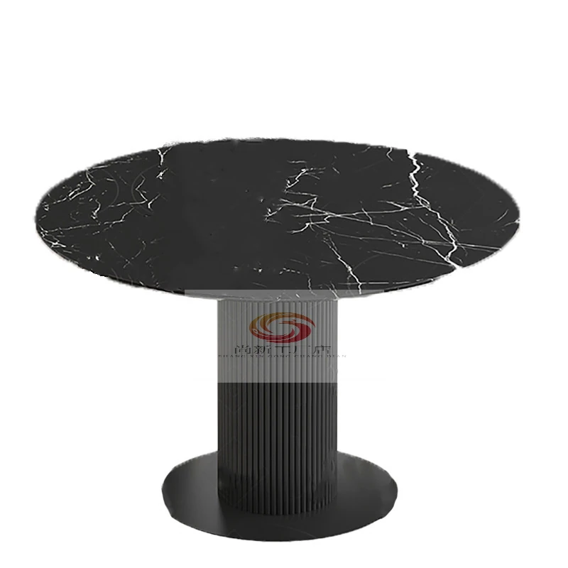 モダンでシンプルな大理石の円形ダイニングテーブルセット - 小さなスペースにぴったり!軽やかな高級感があり、家庭やホテルロビーでの利用に最適。おしゃれなデザインで、食事の時間を特別に演出します。