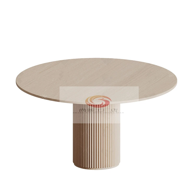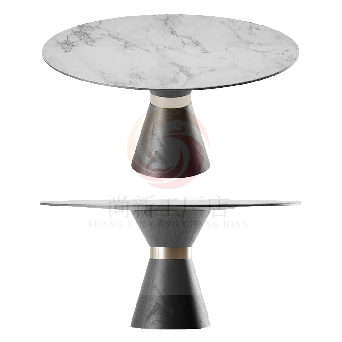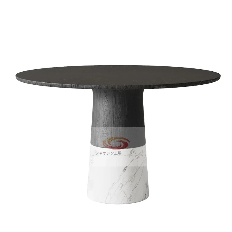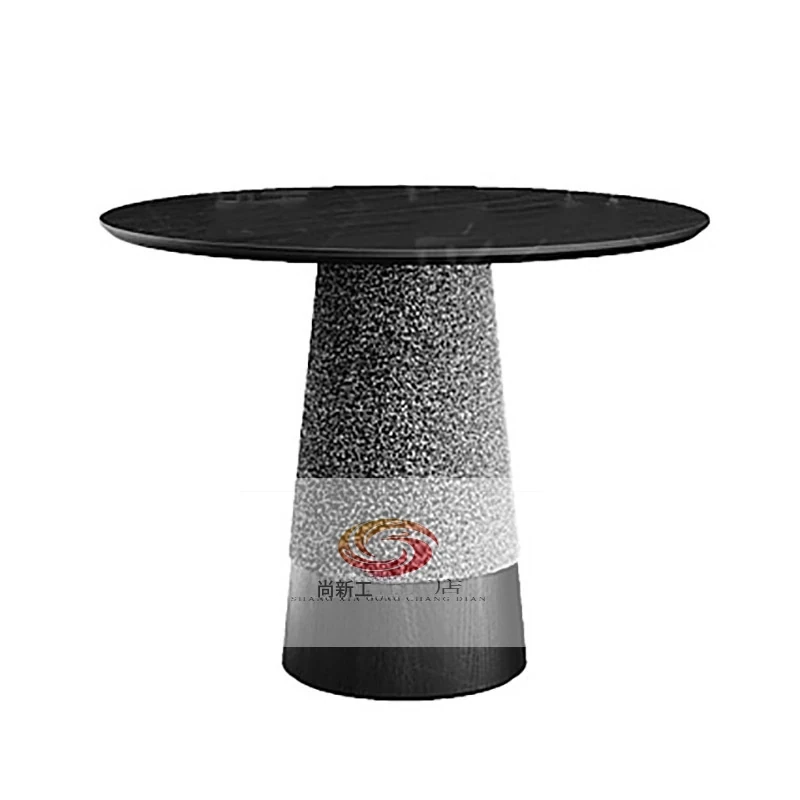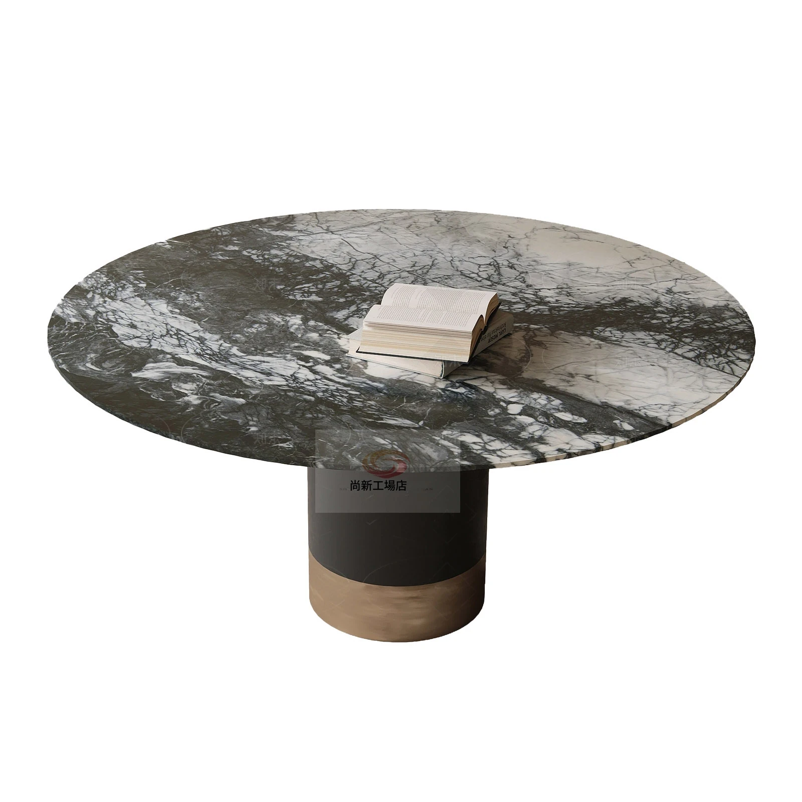 モダンでシンプルな大理石の円形ダイニングテーブルセット - 小さなスペースにぴったり!軽やかな高級感があり、家庭やホテルロビーでの利用に最適。おしゃれなデザインで、食事の時間を特別に演出します。