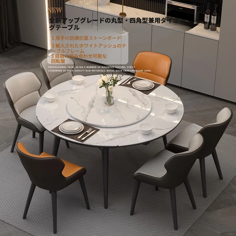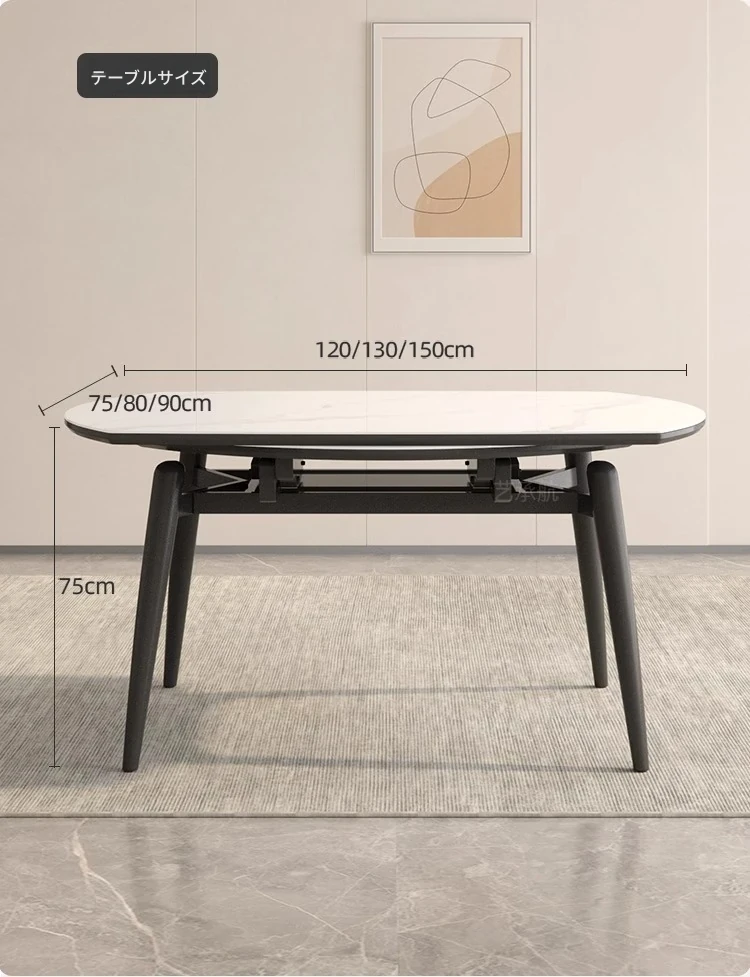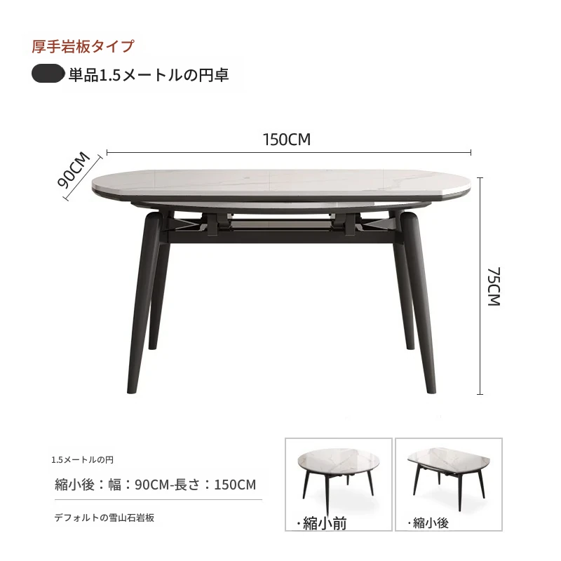1.5メートル伸縮式ダイニングテーブル【正規品12mm岩板+ホワイトアッシュ】