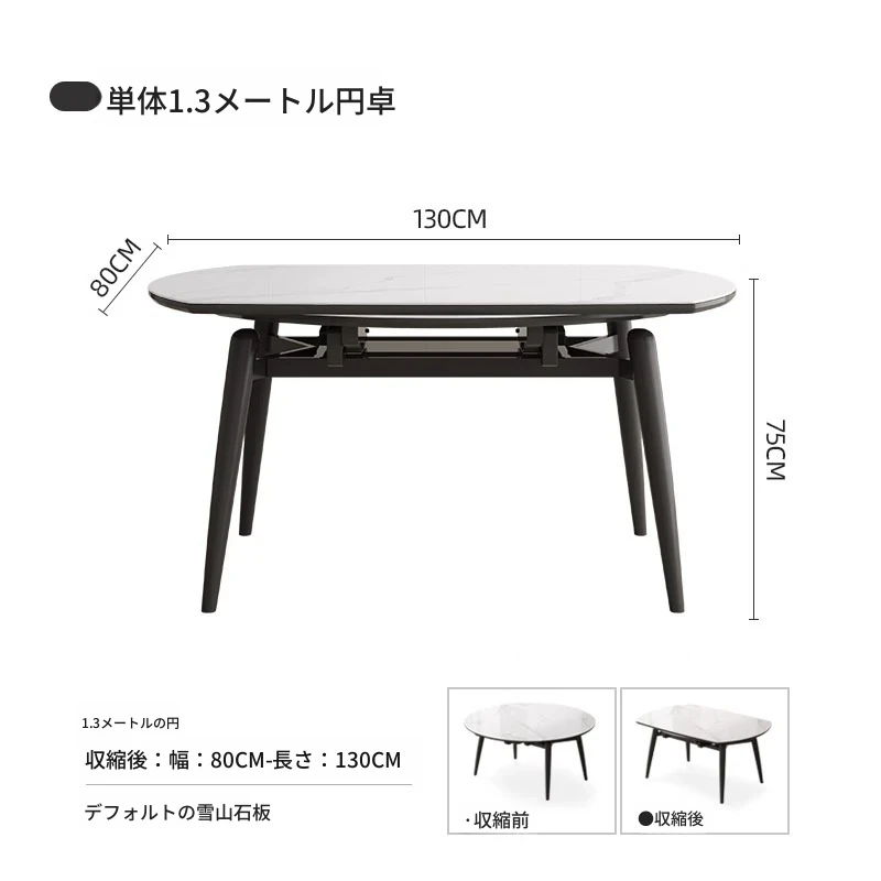 1.3メートル伸縮式ダイニングテーブル【正規品12mm岩板+ホワイトアッシュ】