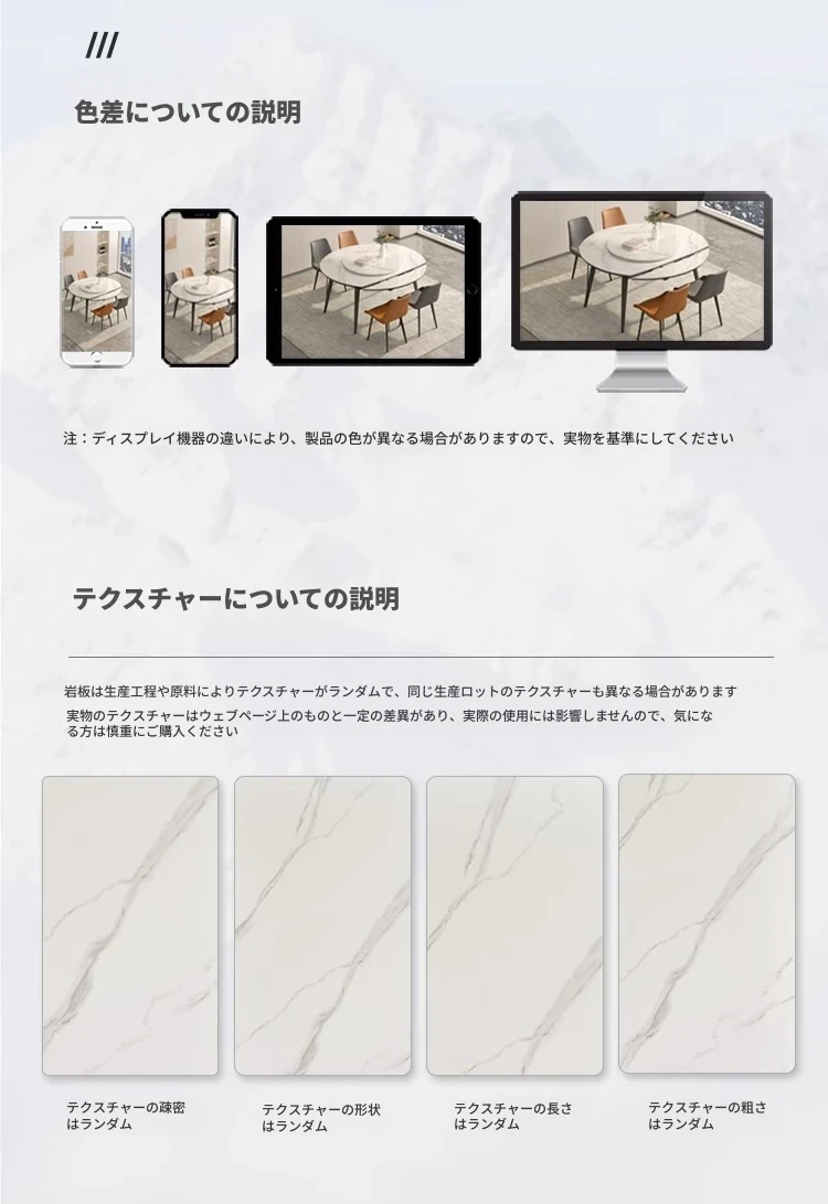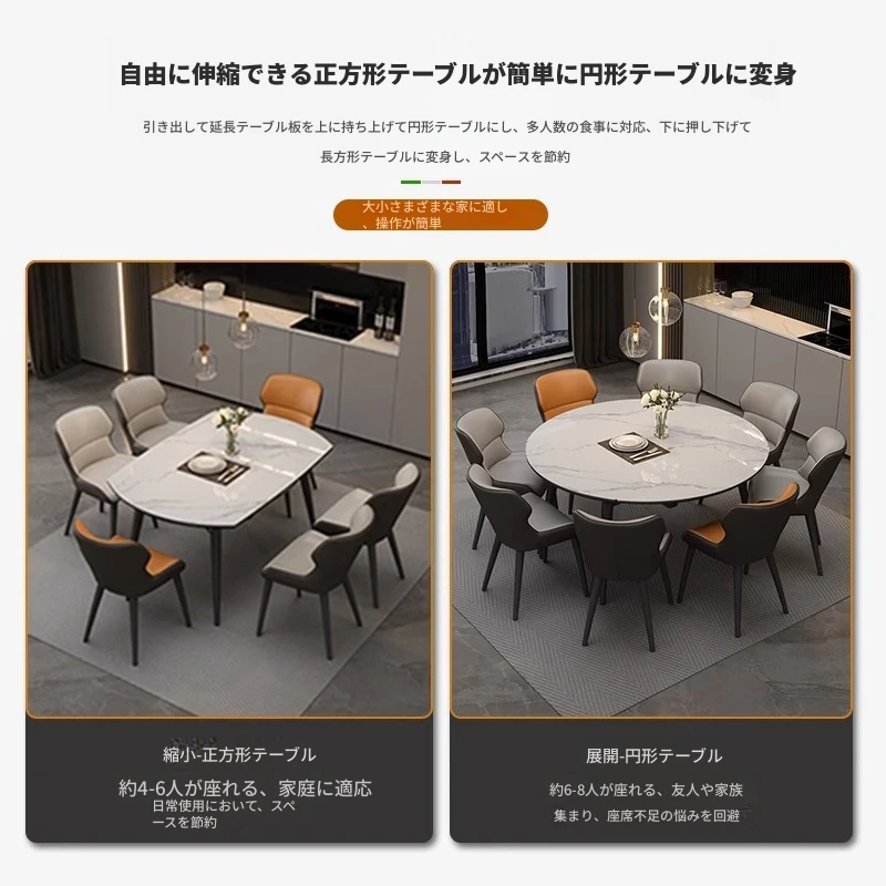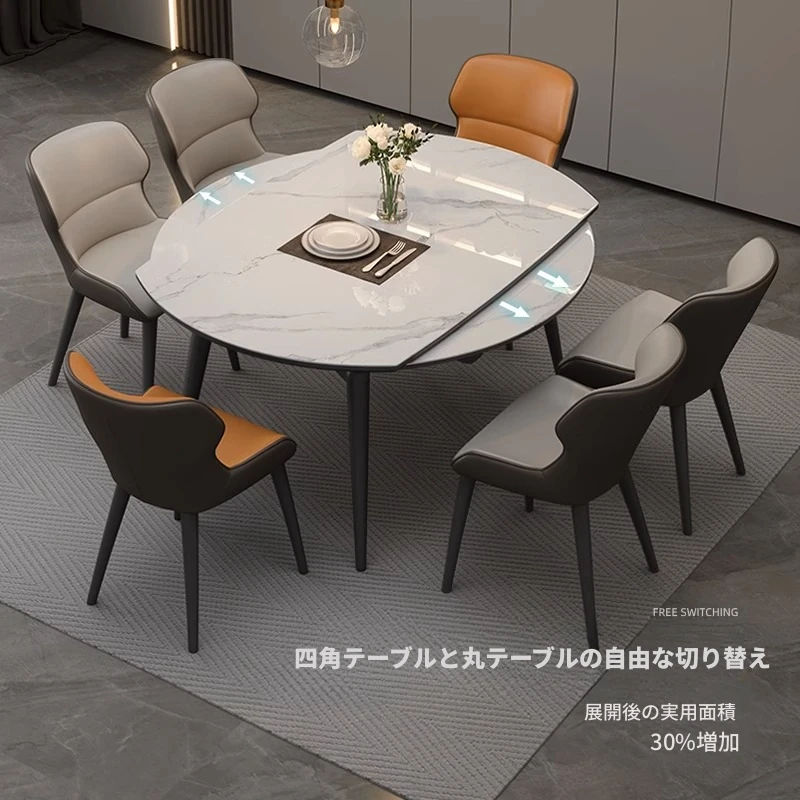 1.2メートル伸縮式ダイニングテーブル【正規品12mm岩板+ホワイトアッシュ】