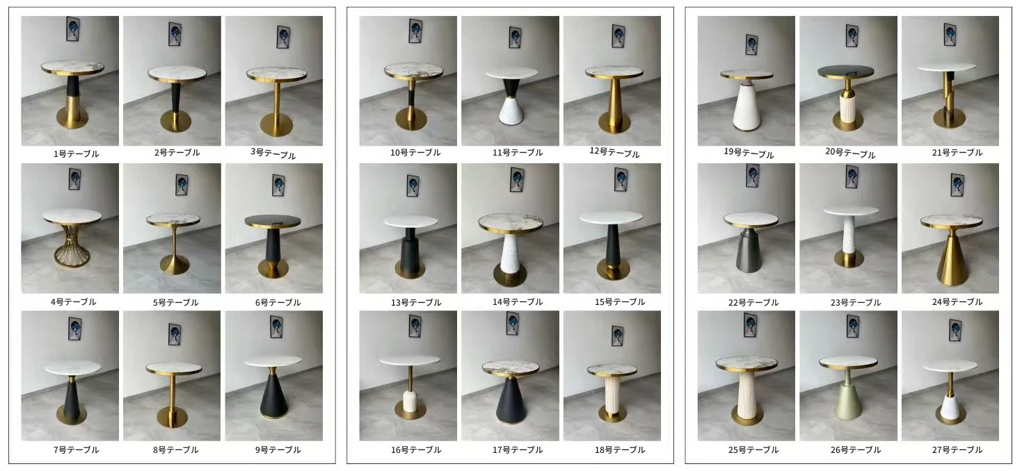 9号のテーブル 大理石のステンレススチールの金メッキ