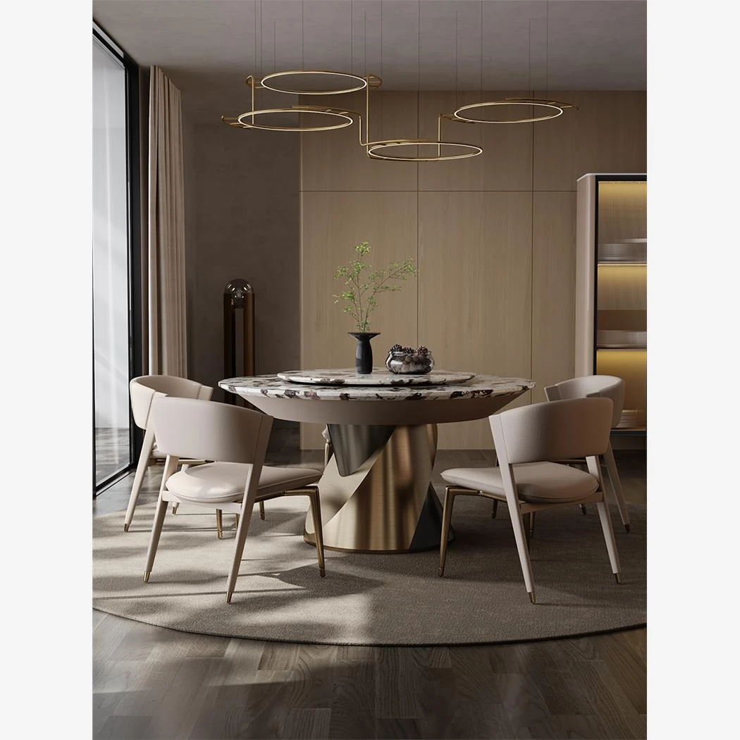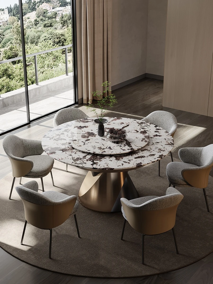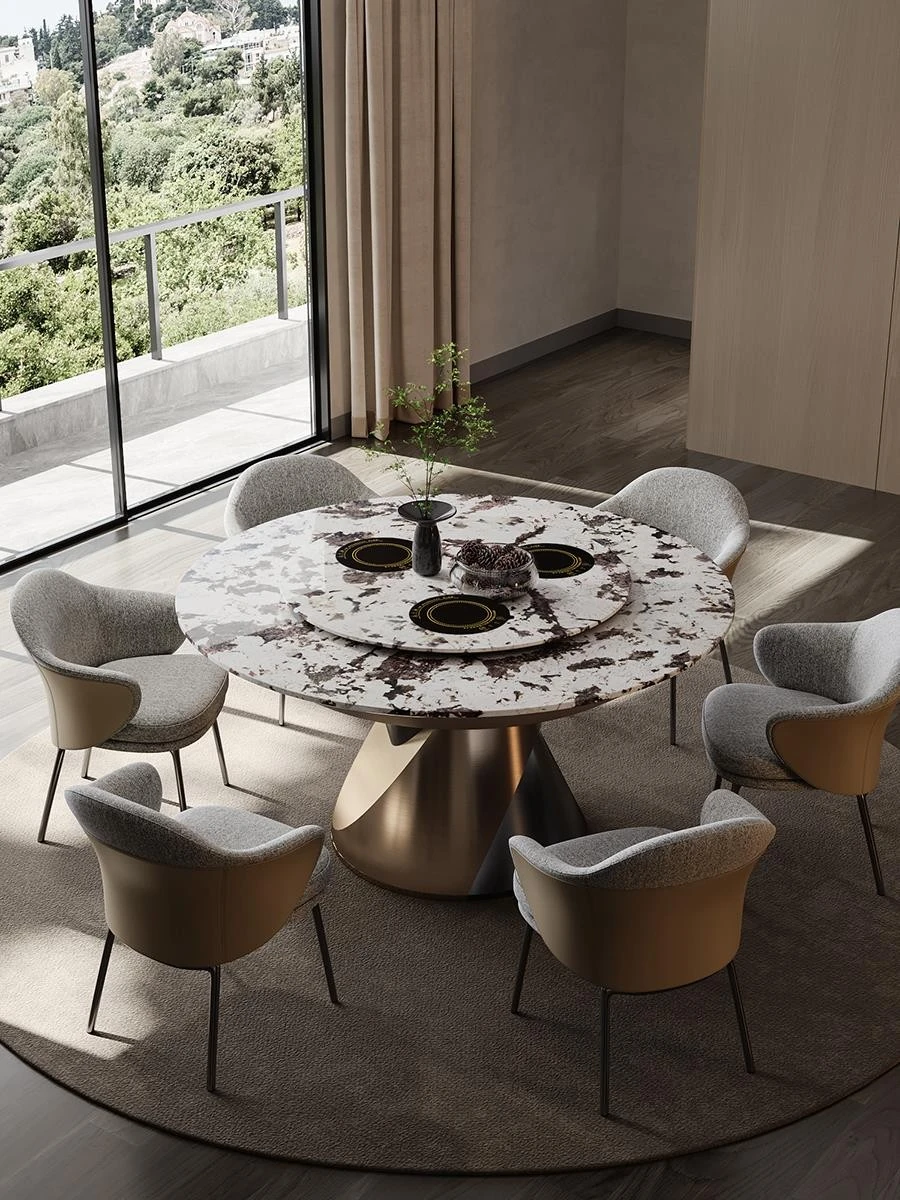 北米産ブラックウォールナット電動円形ダイニングテーブル|ヴィラやレストランに最適!イタリアンミニマリズムデザイン、天然木とラグジュアリーな大理石を融合した一品。