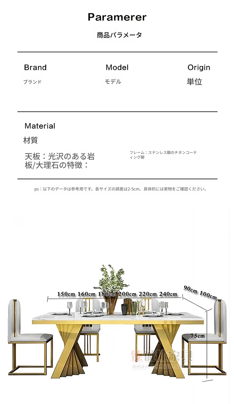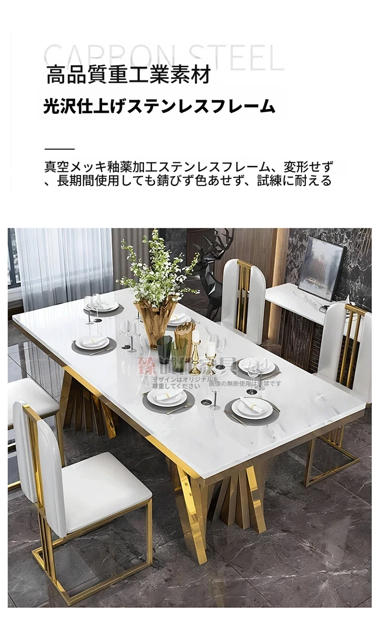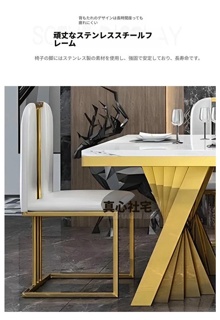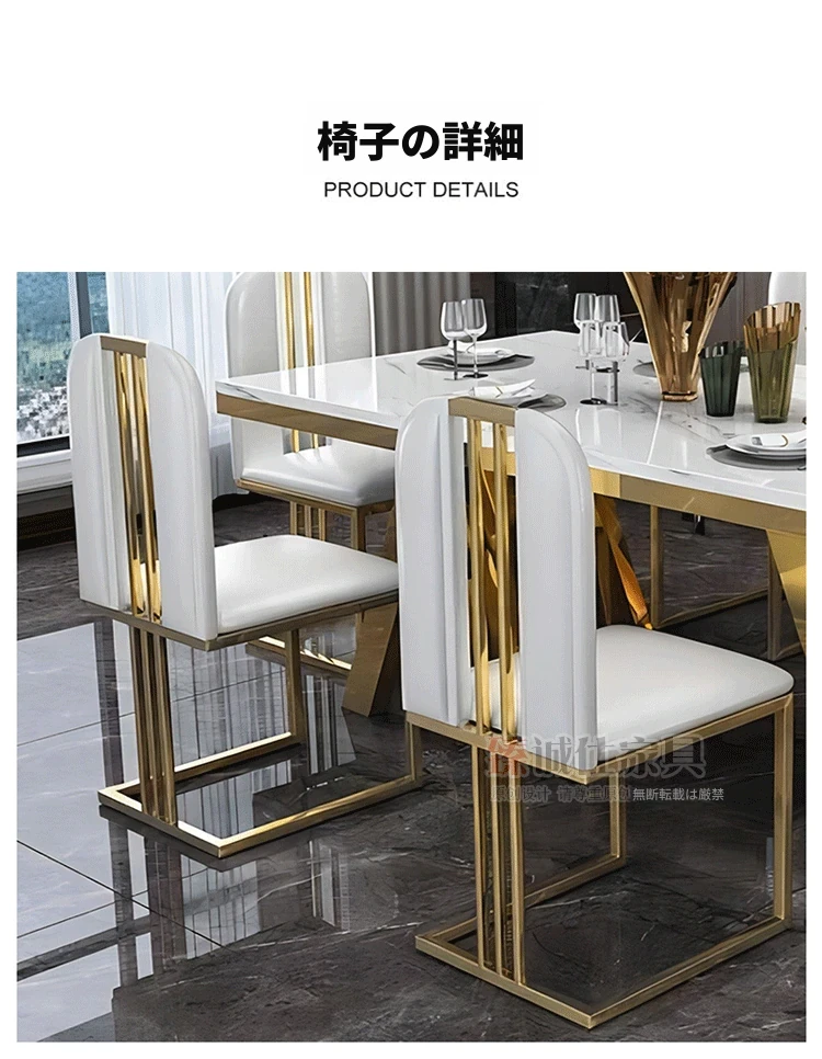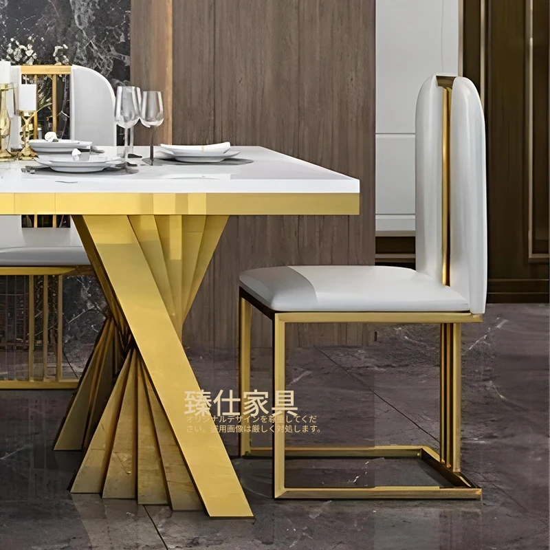 ポストモダンな軽奢華スタイルのステンレス鋼と大理石のダイニングテーブル&チェアセット。広々とした長方形デザインで、大型住宅や別荘に最適な高級セラミック製の食卓。優雅な食事空間を演出します。