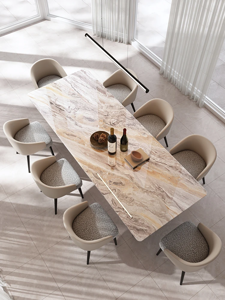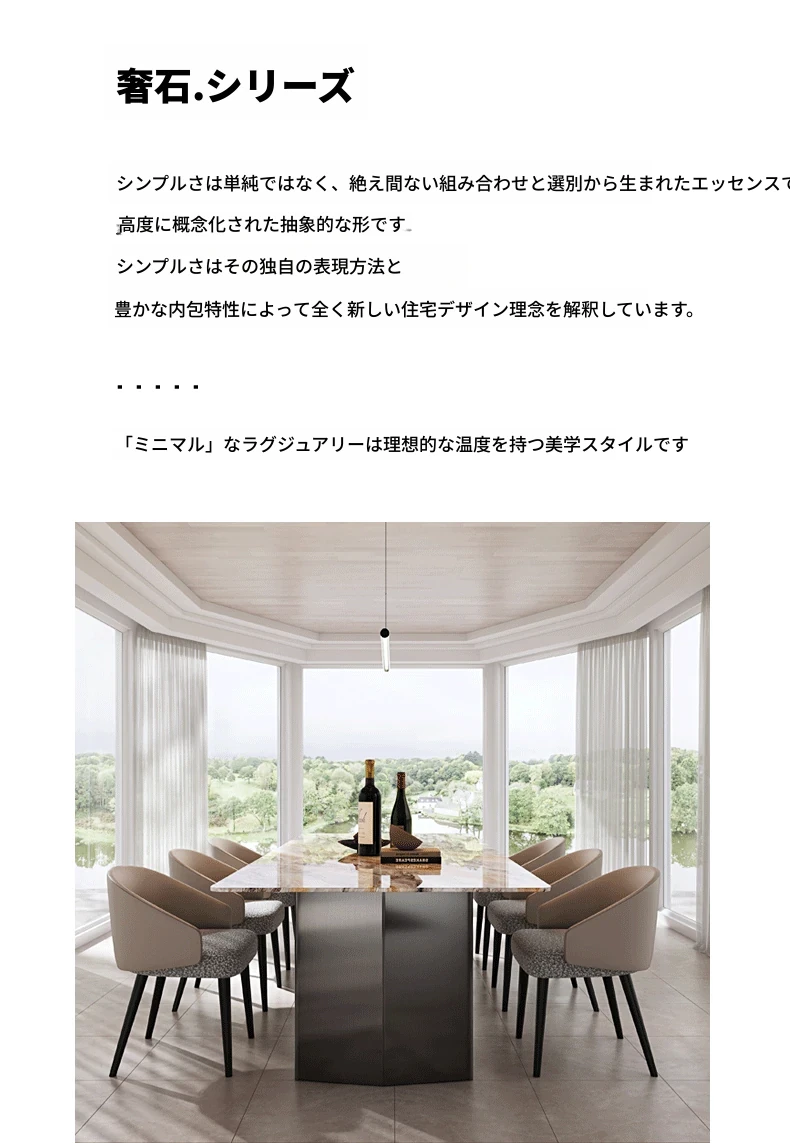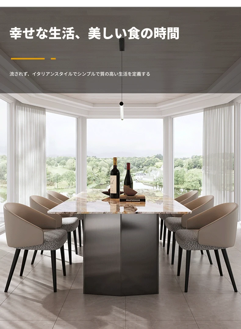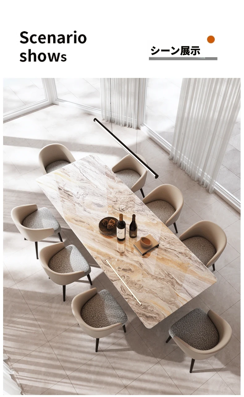 240*100CMダイニングテーブル+8椅子/天然ラグジュアリー石ヴェネツィアブラウン【偽物は10倍返し】