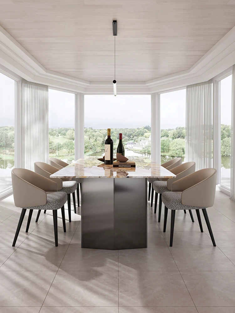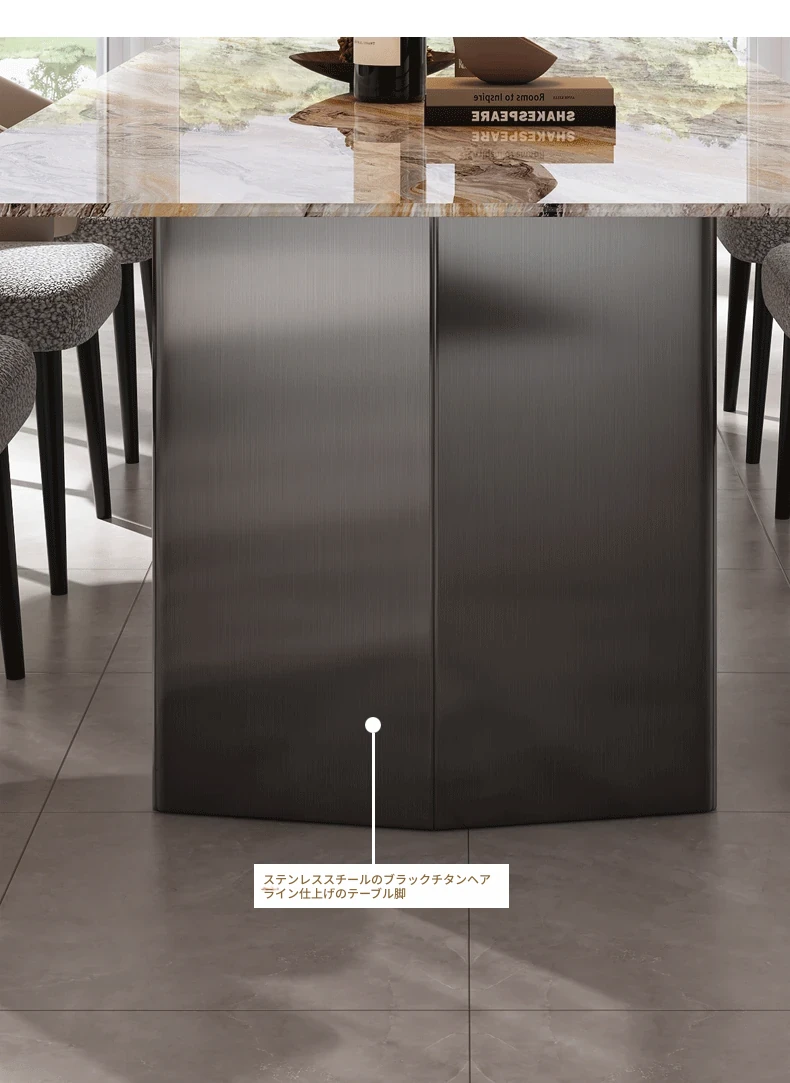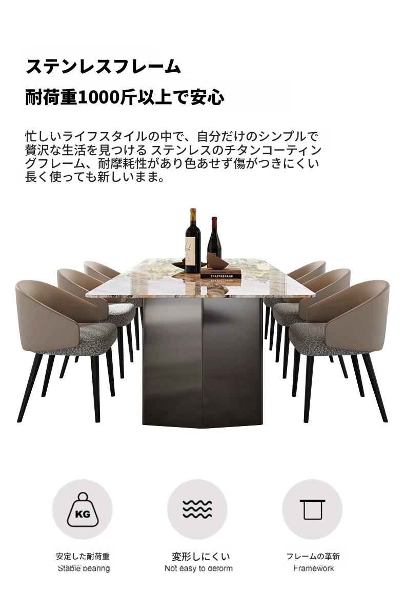 220*100CMダイニングテーブル+8椅子/天然ラグジュアリー石ヴェネツィアブラウン【偽物は10倍返し】