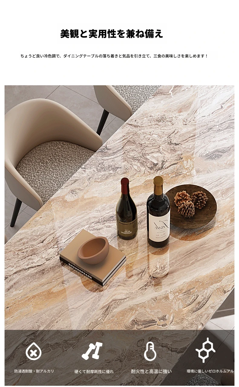 180*90CMダイニングテーブル+6椅子/天然ラグジュアリー石ヴェネツィアブラウン【偽物は10倍返し】