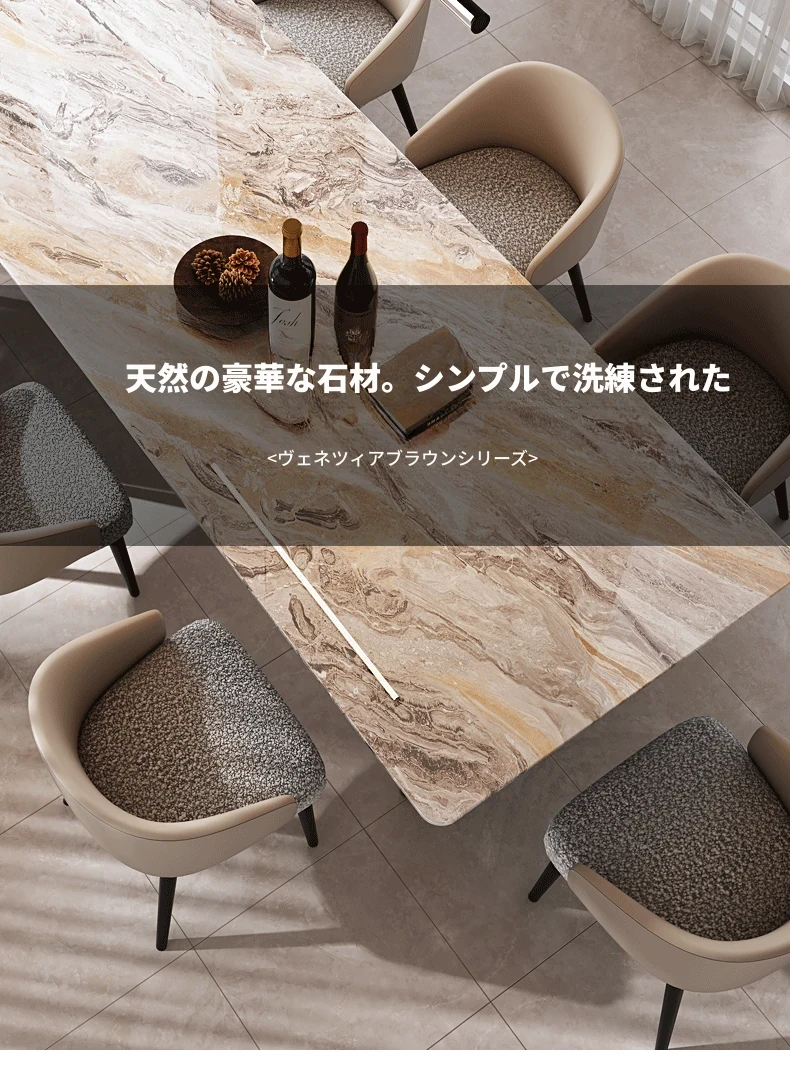 240*100CMダイニングテーブル+6椅子/天然ラグジュアリー石ヴェネツィアブラウン【偽物は10倍返し】