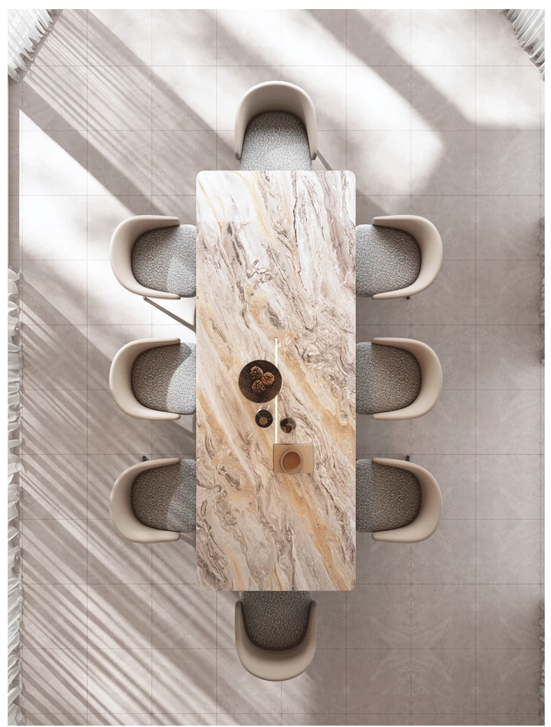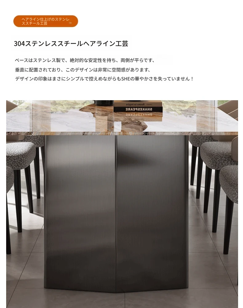 200*90CMダイニングテーブル+8椅子/天然ラグジュアリー石ヴェネツィアブラウン【偽物は10倍返し】