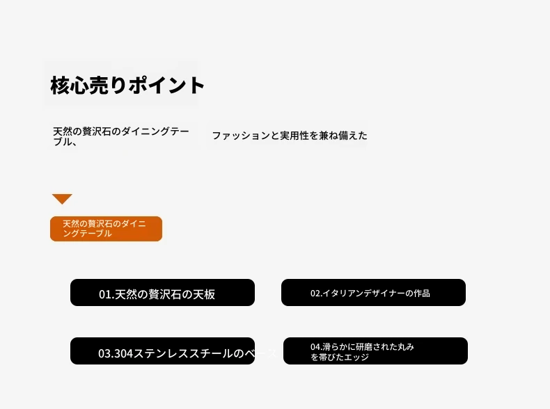 160*80CMダイニングテーブル+4椅子/天然ラグジュアリー石ヴェネツィアブラウン【偽物は10倍返し】