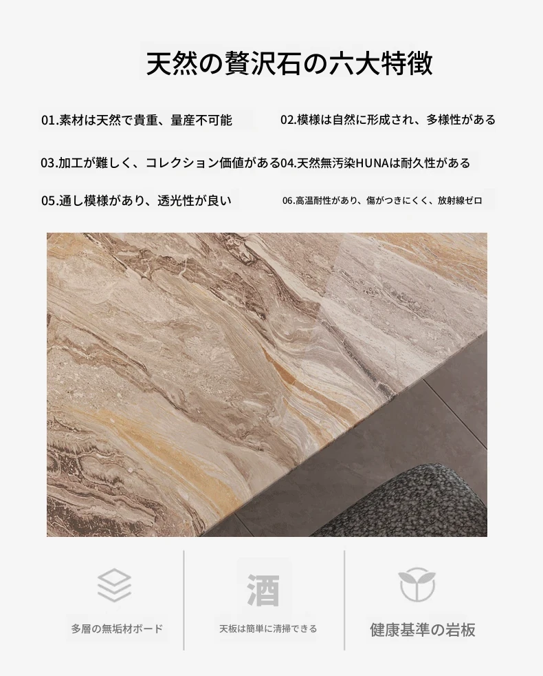 200*90CMダイニングテーブル+6椅子/天然ラグジュアリー石ヴェネツィアブラウン【偽物は10倍返し】