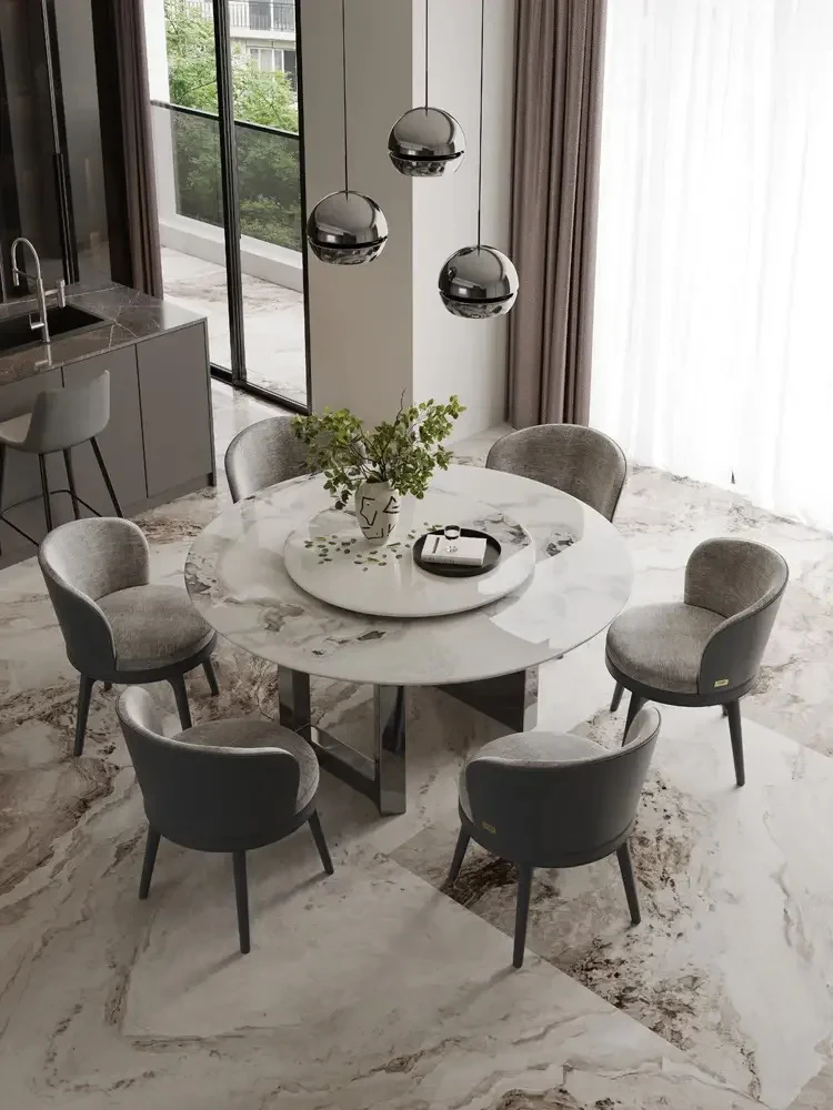 1.35+0.75メートル+6椅子フィンディホワイト豪華石製ダイニングテーブル(偽物は十倍の罰)